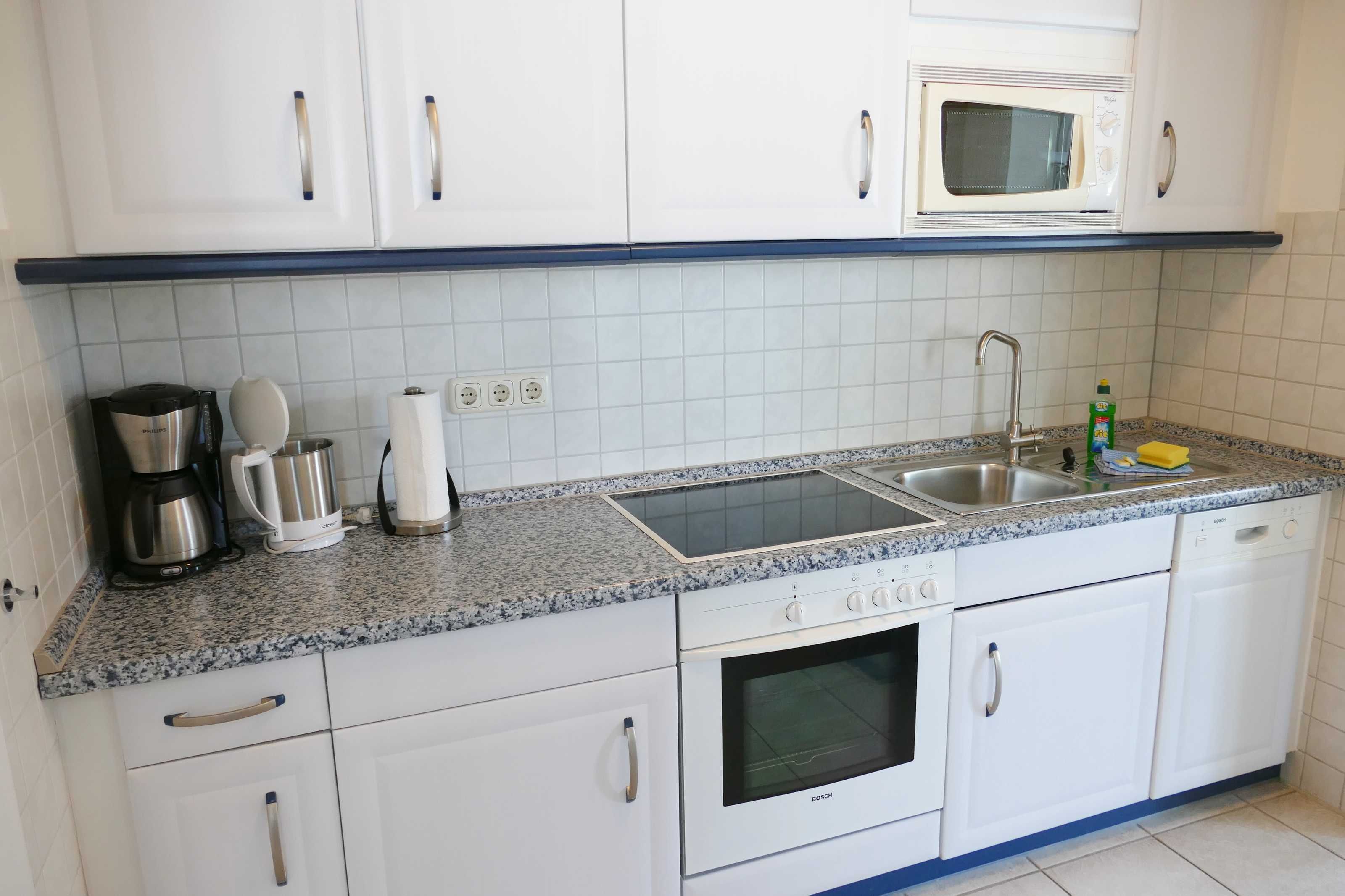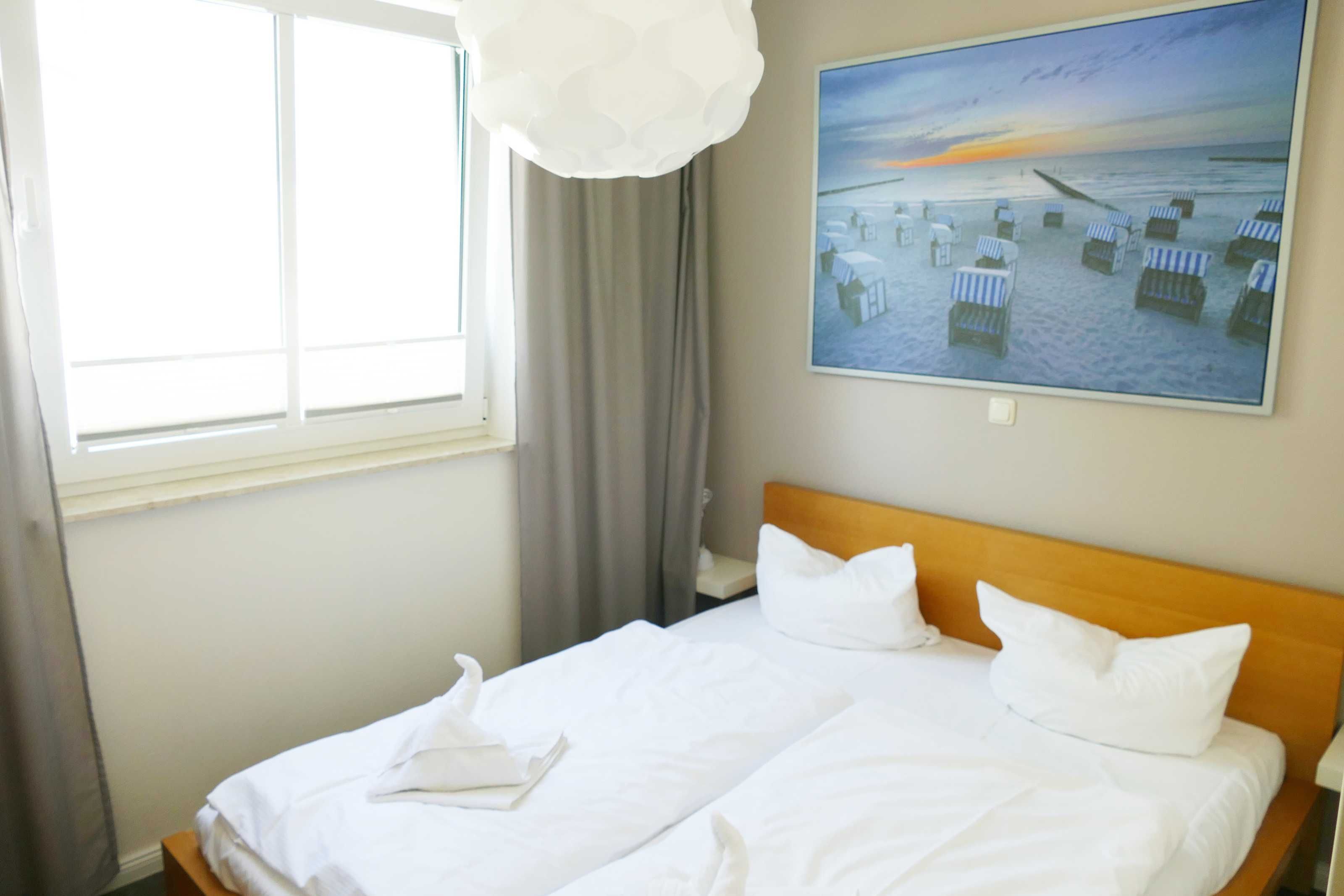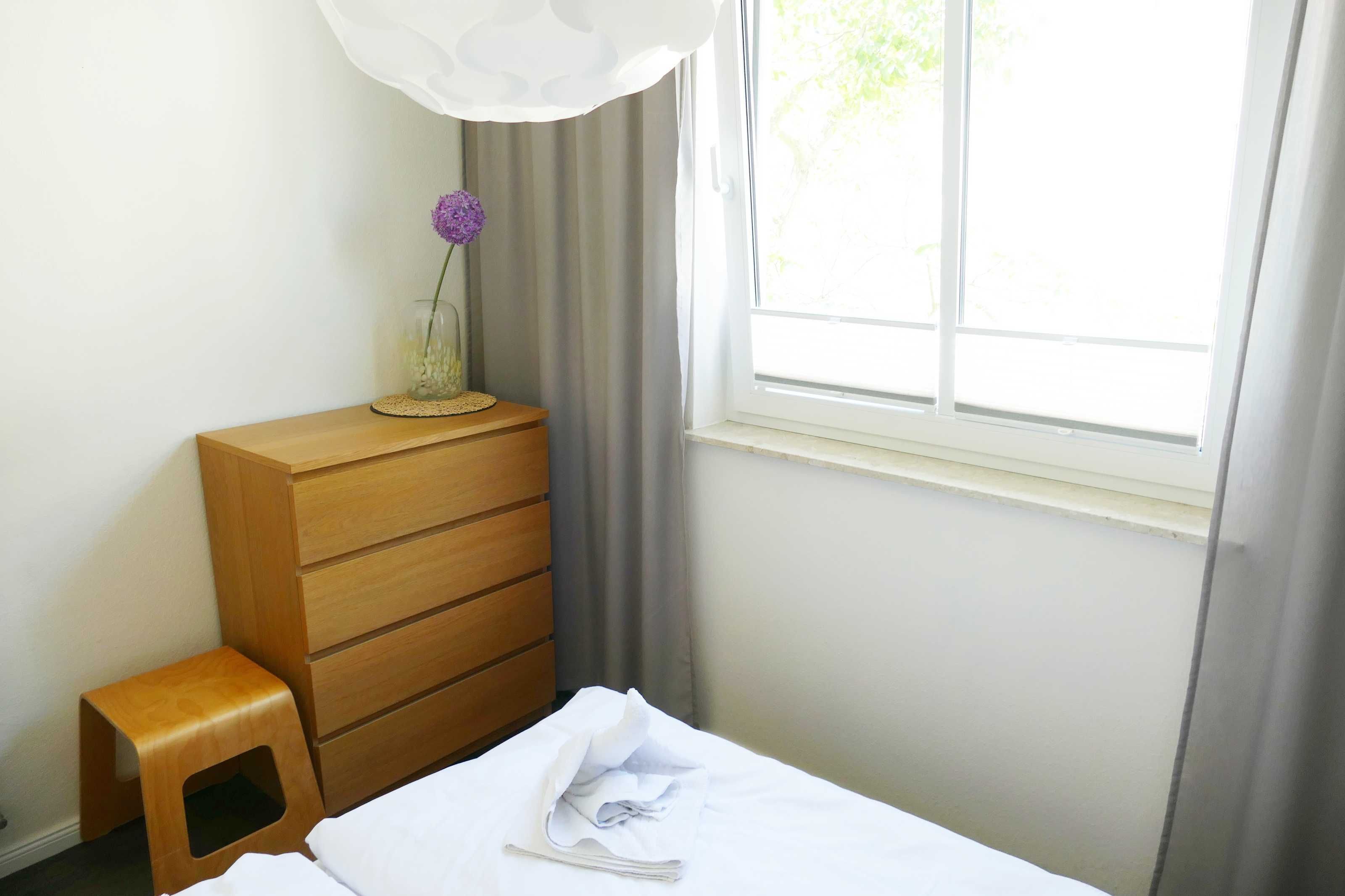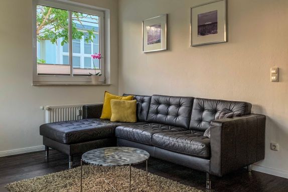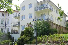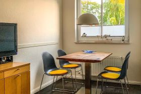 Die Ferienwohnung mit einer Größe von 40 m² befindet sich im ersten Obergeschoss des Hauses. Die 2-Raumwohnung ist modern eingerichtet und bietet bis zu 2 Personen Platz für einen angenehmen Ferienaufenthalt. Der Wohnbereich, mit sonnigem Balkon zur Süd- Westseite und Sitzmöbeln, ist mit einer modernen Sitz- und Essecke, TV, Radio/CD/DVD-Player und kostenfreiem WLAN ausgestattet. Eine komplett ausgestattete Küchenzeile mit Elektroherd, Kühlschrank mit Gefrierfach, Geschirrspüler, Mikrowelle, Kaffeemaschine und Toaster befindet sich im Eingangsbereich. Ein Schlafzimmer mit Doppelbett mit einer Liegefläche von 1,60 m x 2,00 m sowie ein Tageslichtbad mit Dusche und WC sind ebenfalls vorhanden.