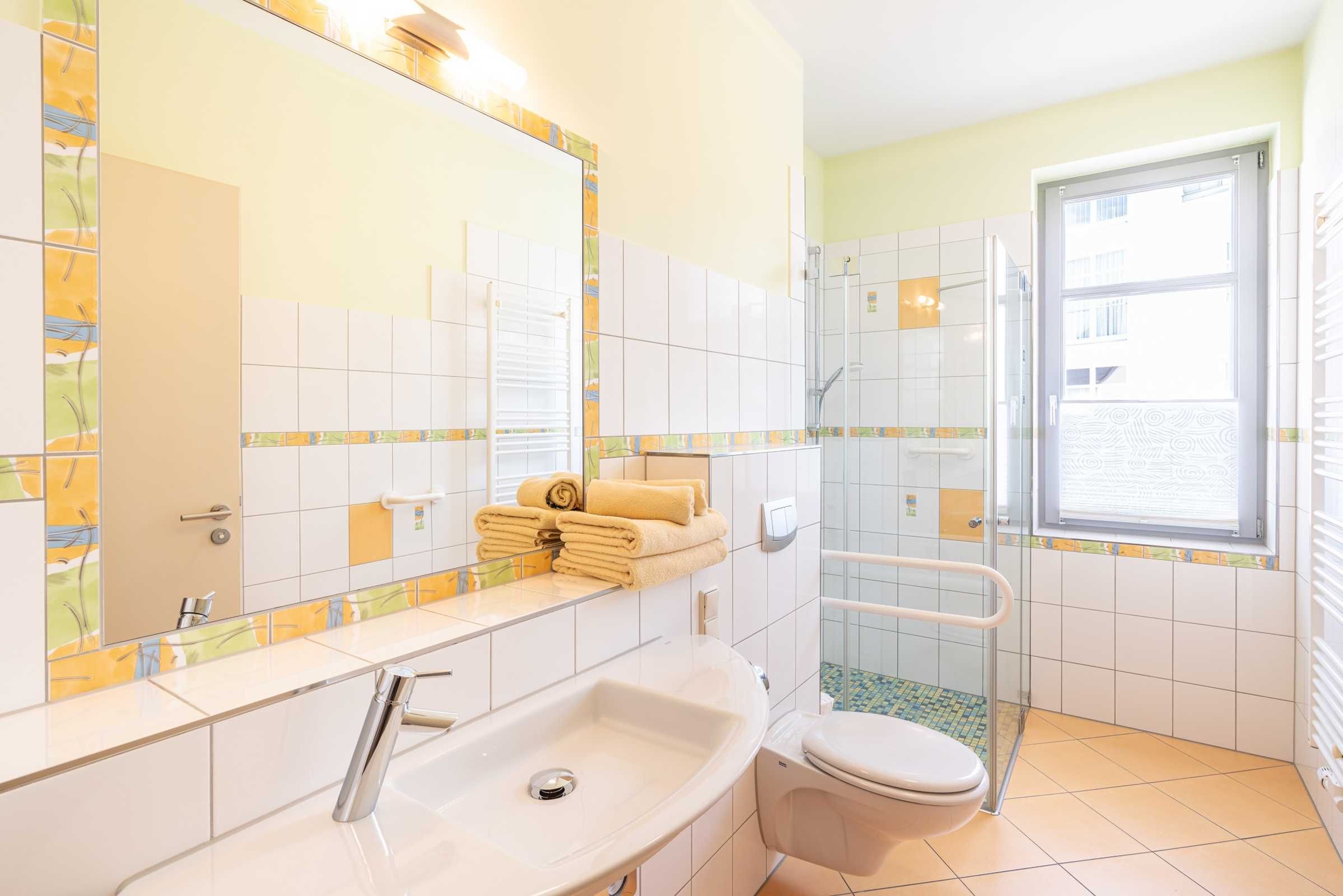 Diese Wohnung befindet sich im Erdgeschoß, ist barrierefrei und für Rollstuhlfahrer geeignet (ebenerdiger Zugang/Dusche ebenerdig) . Sie bietet auf 57 m² Platz für 2 bis max. 3 Personen* (Aufbettung). Der Wohnbereich mit Essplatz und Sofa lässt keine Wünsche offen. Eine gut ausgestattete Küche steht zur Verfügung. Die Wohnung verfügt über 1 Schlafzimmer mit Doppelbett, Bad, Kaminofen und eine Loggia. Im Schlafzimmer gibt es einen zusätzlichen Fernseher.