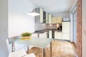 Diese Wohnung befindet sich im Obergeschoß. Sie bietet auf 69m² Platz für 4 bis max. 5 Personen* (Aufbettung). Der Wohnbereich mit Essplatz und Eck-Sofa lässt keine Wünsche offen. Eine gut ausgestattete Küche steht zur Verfügung. Die Wohnung verfügt über 2 Schlafzimmer mit Doppelbett, Bad und eine Loggia. In einem Schlafzimmer gibt es einen zusätzlichen Fernseher.