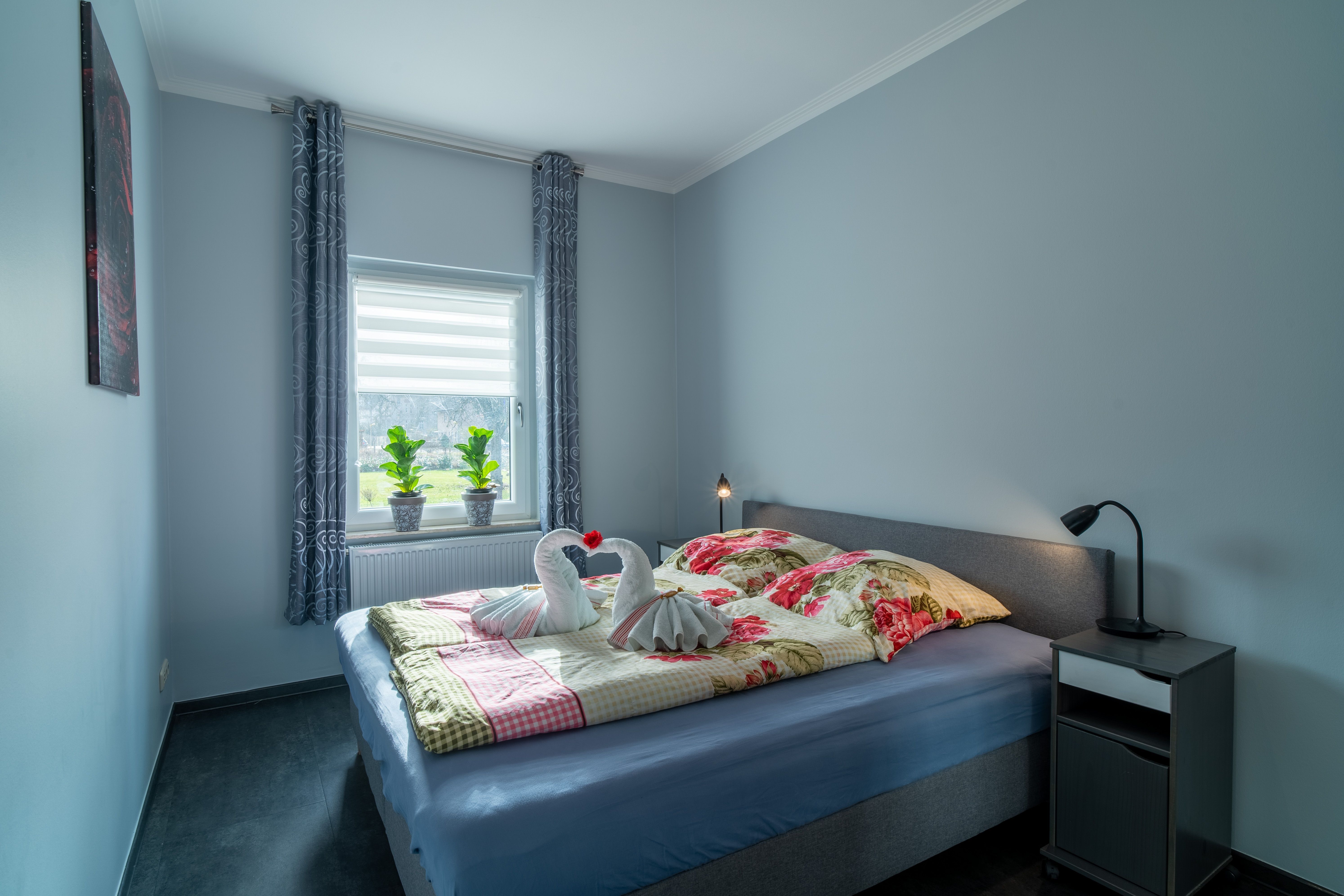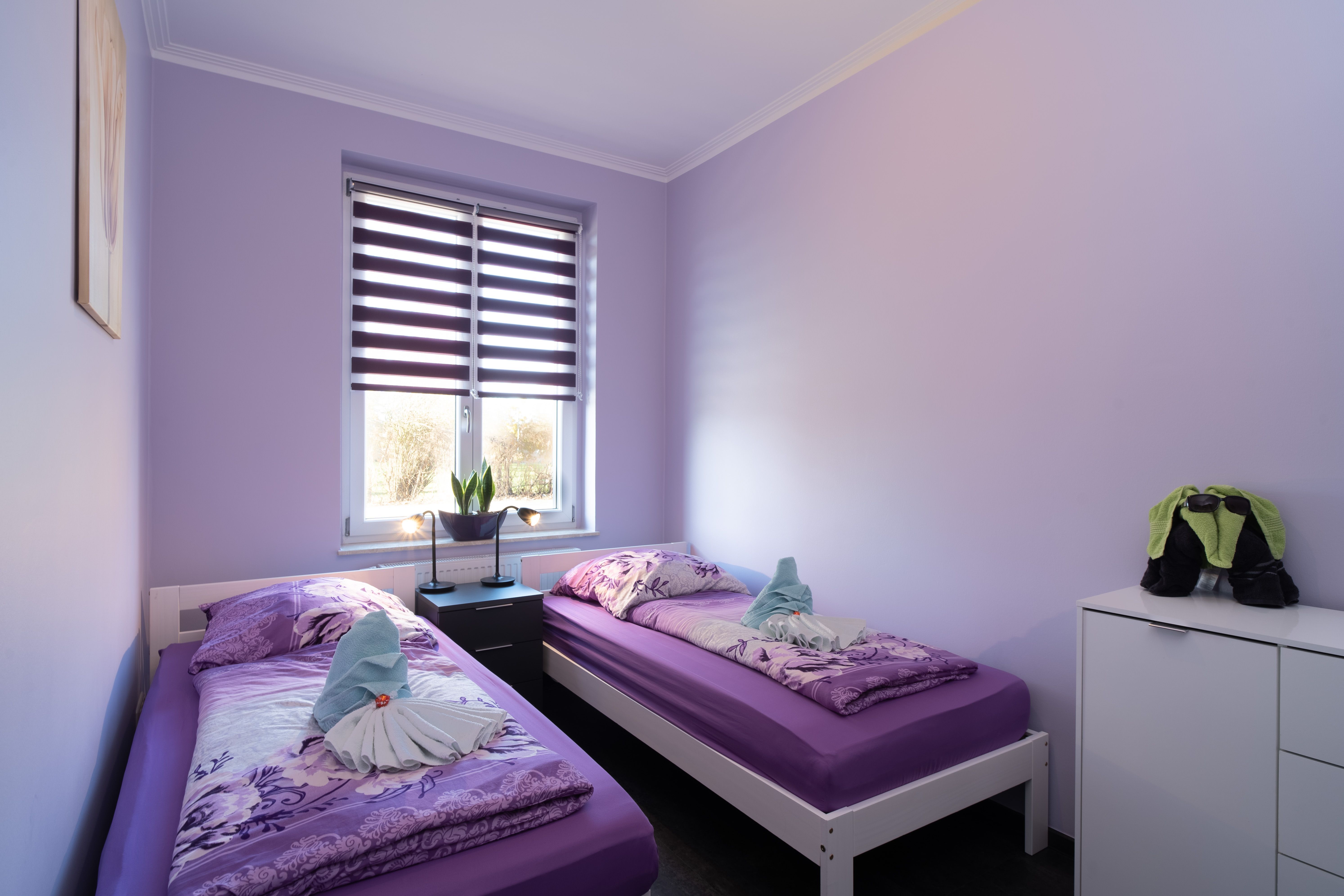 Die Wohnung verfügt über 1 Schlafzimmer mit einem Doppelbett und 1 Schlafzimmer mit zwei Einzelbetten.