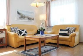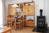 Das gemütliche Ferienhaus mit Terrasse und Grillmöglichkeit und bietet Ihnen eine geräumige Wohnfläche von 54qm. Auch für Allergiker ist dieses Nichtraucher Haus ideal. Der helle Wohn-/Essbereich laden mit Kaminofen und einem bequemen Sofa zum Entspannen ein. Ein großzügiger Esstisch wie auch Fernseher und Musikanlage gehören zur Ausstattung und auch den Internetzugang per WLAN können Sie kostenfrei nutzen. Vom Wohnbereich gelangen Sie auf die sonnige Terrasse, auf der Sie auch grillen können. Die offene Küchenzeile ist in den Wohnbereich integriert und verfügt über einen Ceranfeldherd, Backofen, Dunstabzug, Geschirrspüler, Kühlschrank sowie Kaffeemaschine, Toaster, Wasserkocher usw. Im Erdgeschoss befinden sich ein Schlafzimmer mit zwei Einzelbetten und einem Kleiderschrank sowie ein Duschbad mit Fenster. Auch eine Waschmaschine können Sie kostenfrei nutzen. Über eine Treppe gelangen Sie in das Obergeschoss mit einem weiteren Schlafzimmer 1x Doppelbett und Kleiderschrank. Ein Gäste -WC mit Tageslichtfenster steht Ihnen auf dieser Ebene zur Verfügung. Für unsere kleine Kinder stehen Kinderreisebett und Kinderhochstuhl sowie Spielsachen bereit. Alle Fenster des Hauses sind mit Insektenabwehrschutz ausgestattet und die Fenster der Schlafzimmer können über Außenrollos verdunkelt werden. Das Reihenhaus ist für Allergiker geeignet somit sind Haustiere, wie auch Rauche nicht gestattet. Ihren PKW parken Sie kostenfrei am Haus. In nur 350 Meter gelangen Sie an den feinsandigen Strand mit guten Bademöglichkeiten.