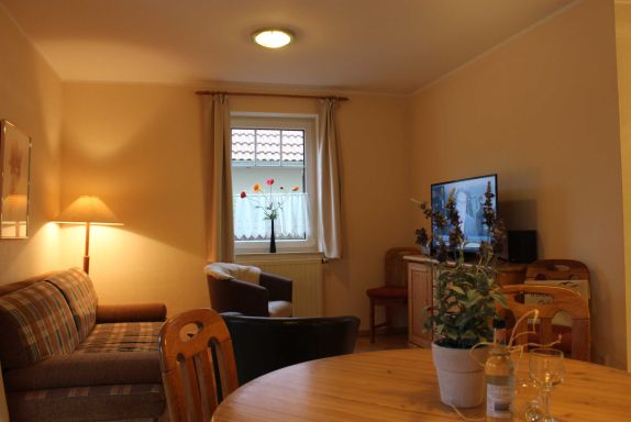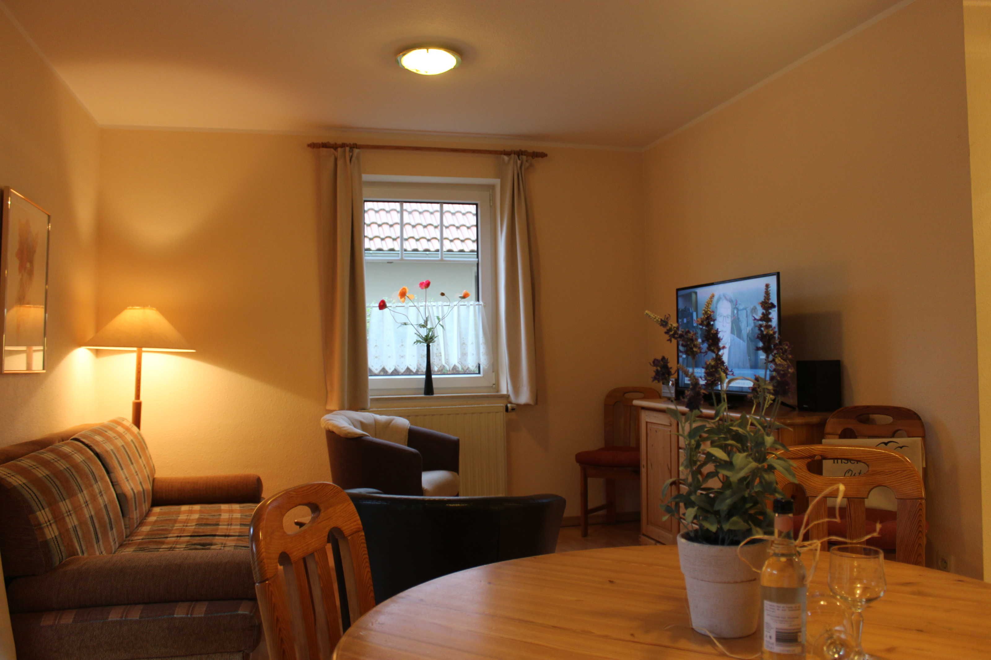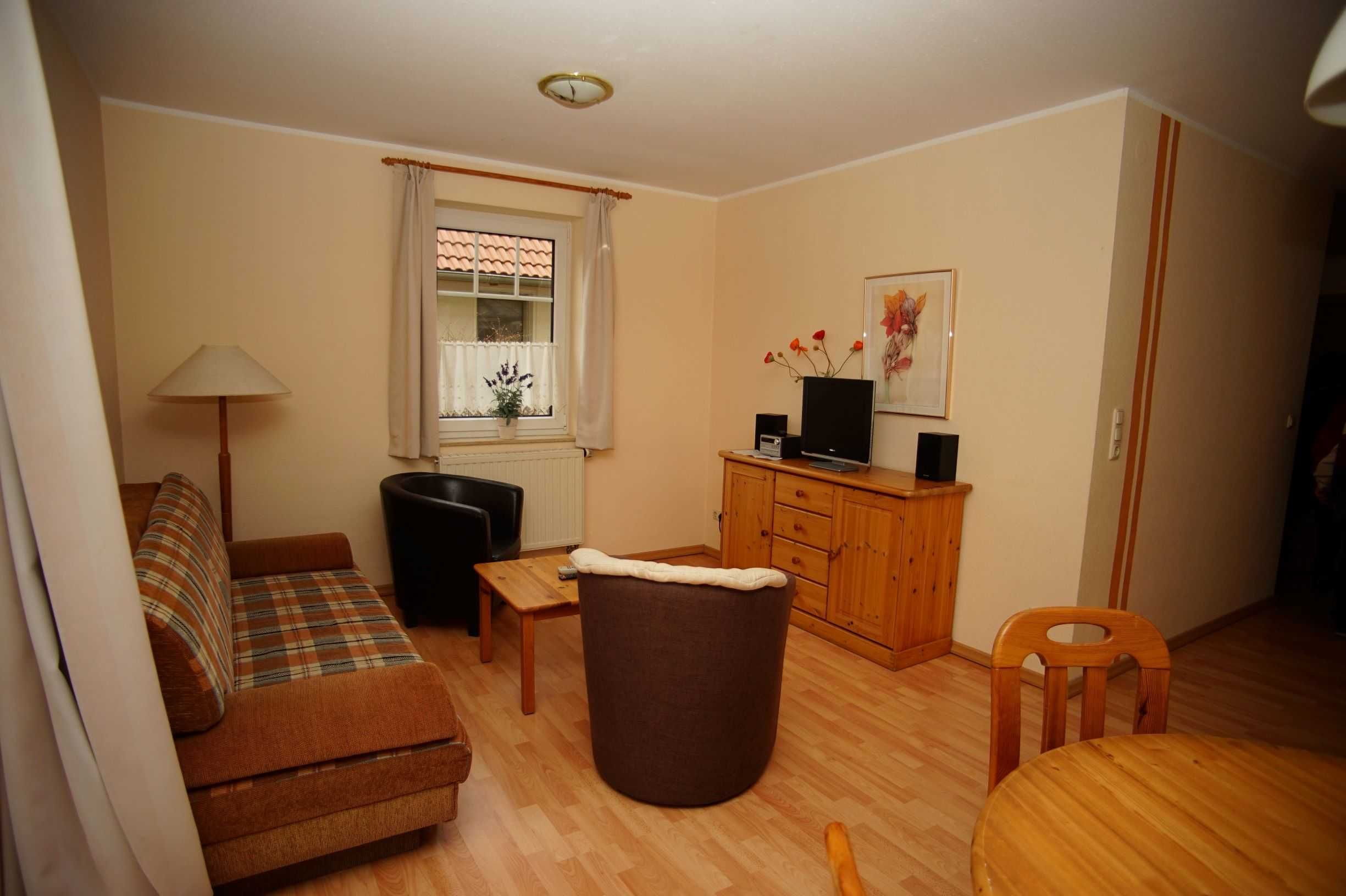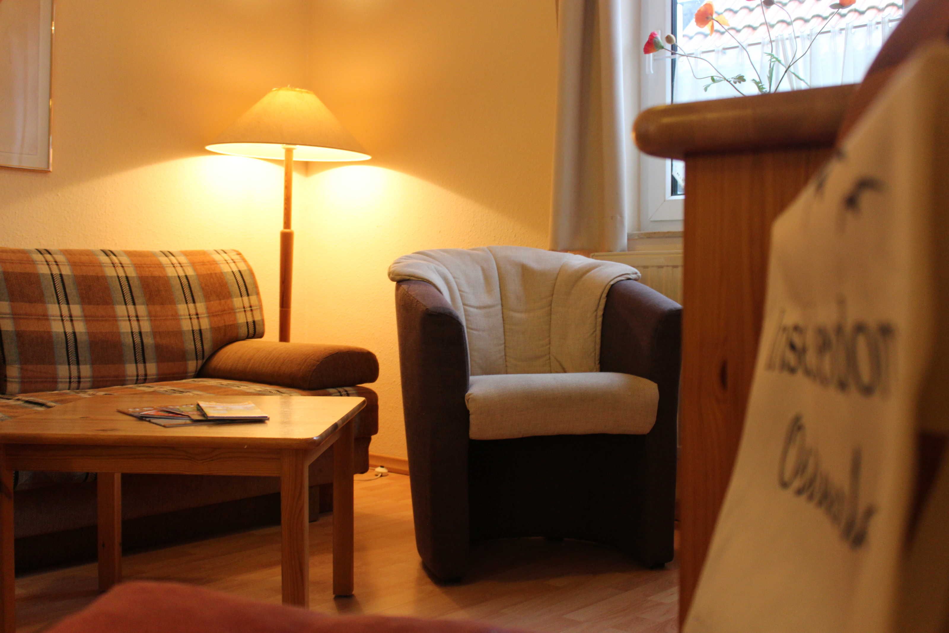 Im Wohnbereich befindet sich eine Couch, die als Schlafcouch für 2 Personen genutzt werden kann. Vom Wohnbereich gelangen Sie auf die Terrasse. Hier können Sie auch rauchen.
