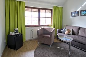 Die Doppelzimmer sind großzügig und komfortabel ausgestattet mit Sitzecke, Sat.-TV, Telefon, Doppelbett und Dusche/WC. Lage: 1. Stock. Darüber hinaus gehört zu jeder Wohnung ein Pkw-Stellplatz. Alle Appartements inklusive Energiekosten, Wasser, Bettwäsche / Handtücher und Endreinigung. Babybett und Hochstuhl kostenlos.