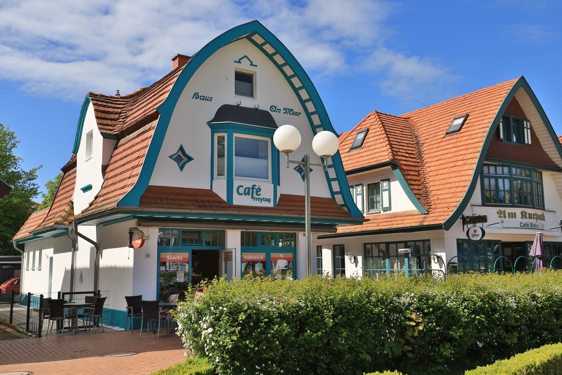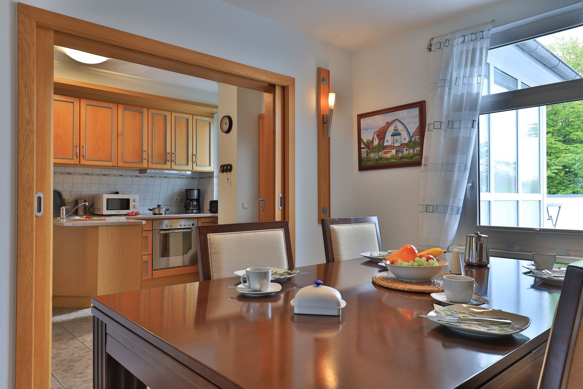 Die charmante 2-Zimmer-Maisonetten Ferienwohnung liegt 40 Meter zur Ostsee und bietet für bis zu 2 Personen eine Wohnfläche von 80qm. Sie bewohnen das 1. Obergeschoss über zwei Ebenen. -Kleines Haus am Meer- verfügt über einen separaten Eingang. Die nach Süd-/West und somit zum Ortszentrum ausgerichtete Dachterrasse ist 12qm groß -saisonal möbliert. Hell und freundlich empfängt Sie der geräumige Wohn-/ Essbereich, von dem Sie den Blick auf die Ostsee genießen können. Des Weiteren ist im Wohnbereich ein bequemes Sofa wie auch eine Sitzbank im Retro Style und ein Esstisch vorhanden. Zur technischen Ausstattung gehören ein Fernseher, Musikanlage, WLAN kostenfrei. Die separate Küche ist gut ausgestattet mit Ceranfeldherd, Backofen, Dunstabzug, Kühlschrank, Kaffeemaschine, Toaster u.s.w. In der 2. Wohnebene befinden sich ein großes Schlafzimmer mit Doppelbett und Kleiderschrank sowie ein modernes Duschbad. Für Ihren PKW steht ein kostenfreier Stellplatz zur Verfügung. Es handelt sich um eine Nichtraucher Wohnung, in der Haustiere nicht gestattet sind. Für Gäste, die kurze Wege bevorzugen ist dieses Feriendomizil in direkter Kurparklage geradezu ideal. Bummeln Sie entlang der Mittelpromenade vorbei an kleinen Boutiquen bis hin zum Küstenwäldchen.