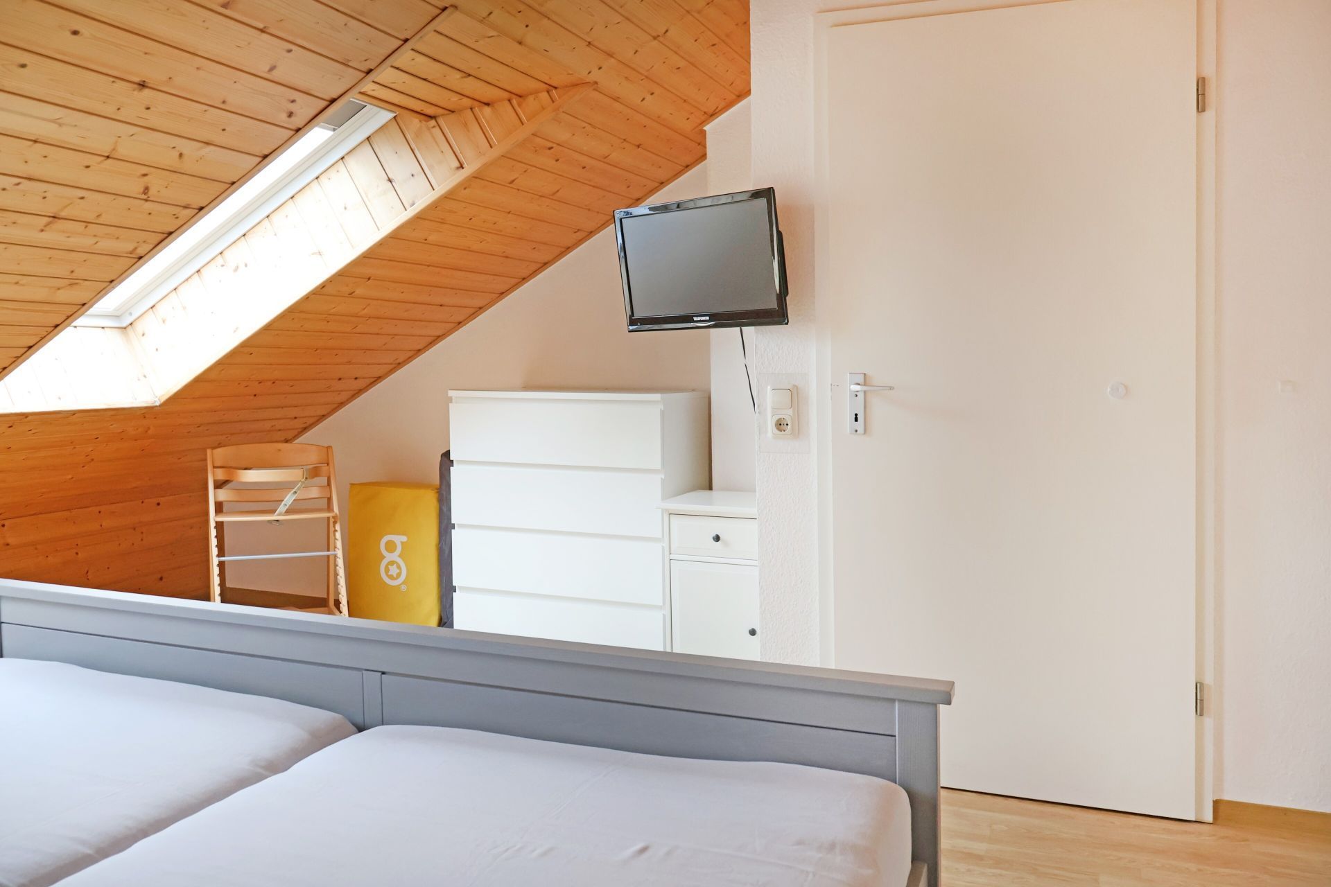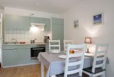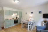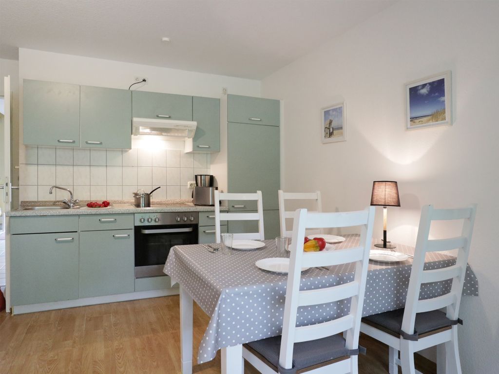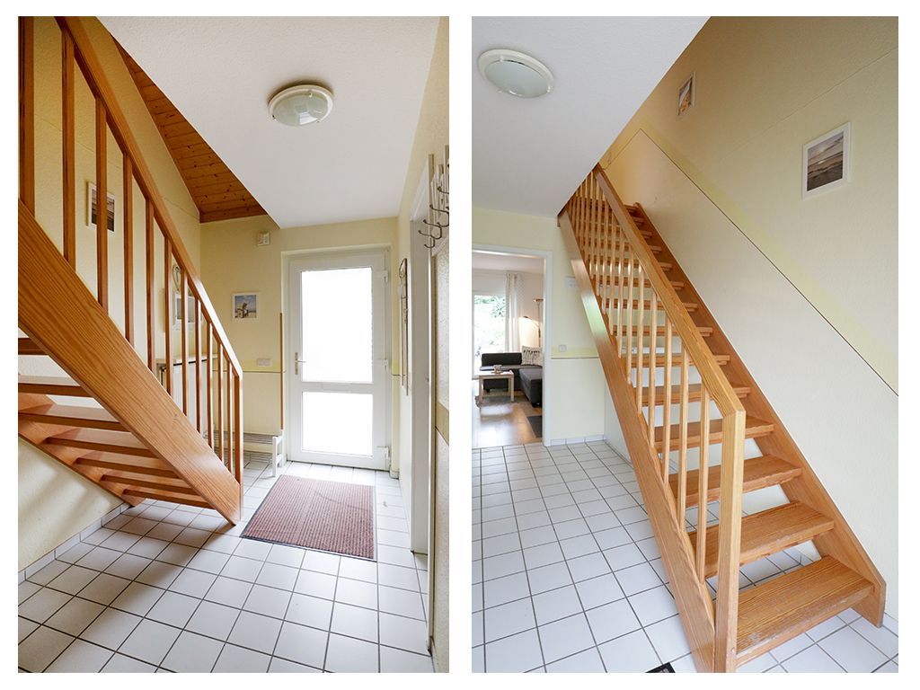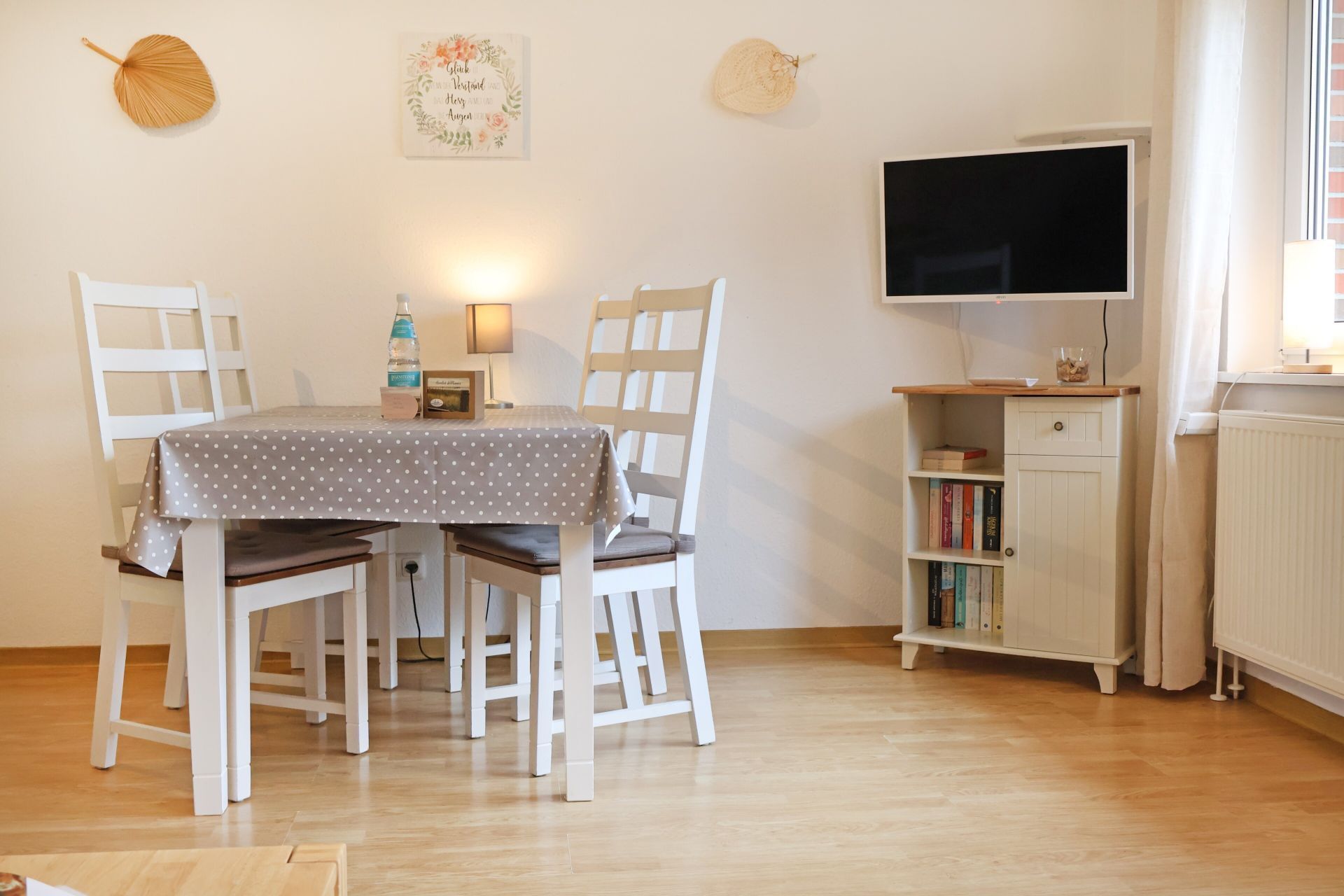 Das Ferienreihenhaus ? Urlauberdorf 24b- liegt nur 350 Meter zum Strand und verfügt über eine Wohnfläche von 55qm. Für bis zu vier Personen, gerne auch mit Hund ist das Ferienobjekt buchbar. Der einladende Erdgeschossbereich mit Zugang auf die sonnige Terrasse begrüßt mit einem kombinierten Wohn-/ Essbereich, in dem sich neben Kaminofen auch ein bequemes Sofa, Fernseher, Radio, Esstisch befinden. Die in den Wohnraum integrierte Küche ist gut ausgestattet mit Ceranfeldherd, Backofen, Dunstabzug, Kühlschrank, Kaffeemaschine, Wasserkocher, Toaster u.v.m. Zudem befindet sich im Erdgeschoss ein Schlafzimmer mit zwei Einzelbetten und Kleiderschrank. Auch ein barrierearmes Duschbad ist in der unteren Ebene vorhanden. Im Obergeschoss des Hauses befindet sich ein Schlafzimmer mit Doppelbett, Kleiderschrank und ein Fernseher. Ein Gäste- WC mit Waschbecken ist ebenso auf der oberen Ebene. Ein Fahrrad steht zur kostenfreien Nutzung bereit und ein Abstellraum dient als Unterstellplatz für Ihre mitgebrachten Fahrräder. Kostenfrei können Sie einen Pkw-Stellplatz direkt vor dem Haus nutzen. In naher Umgebung befinden sich gute Einkaufsmöglichkeiten. Das Angebot richtet sich an Nichtraucher. Haustiere sind gestattet.
