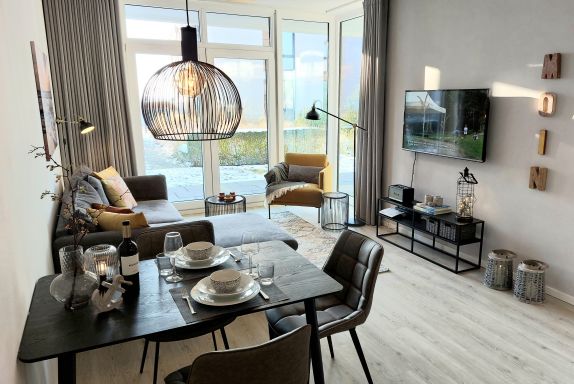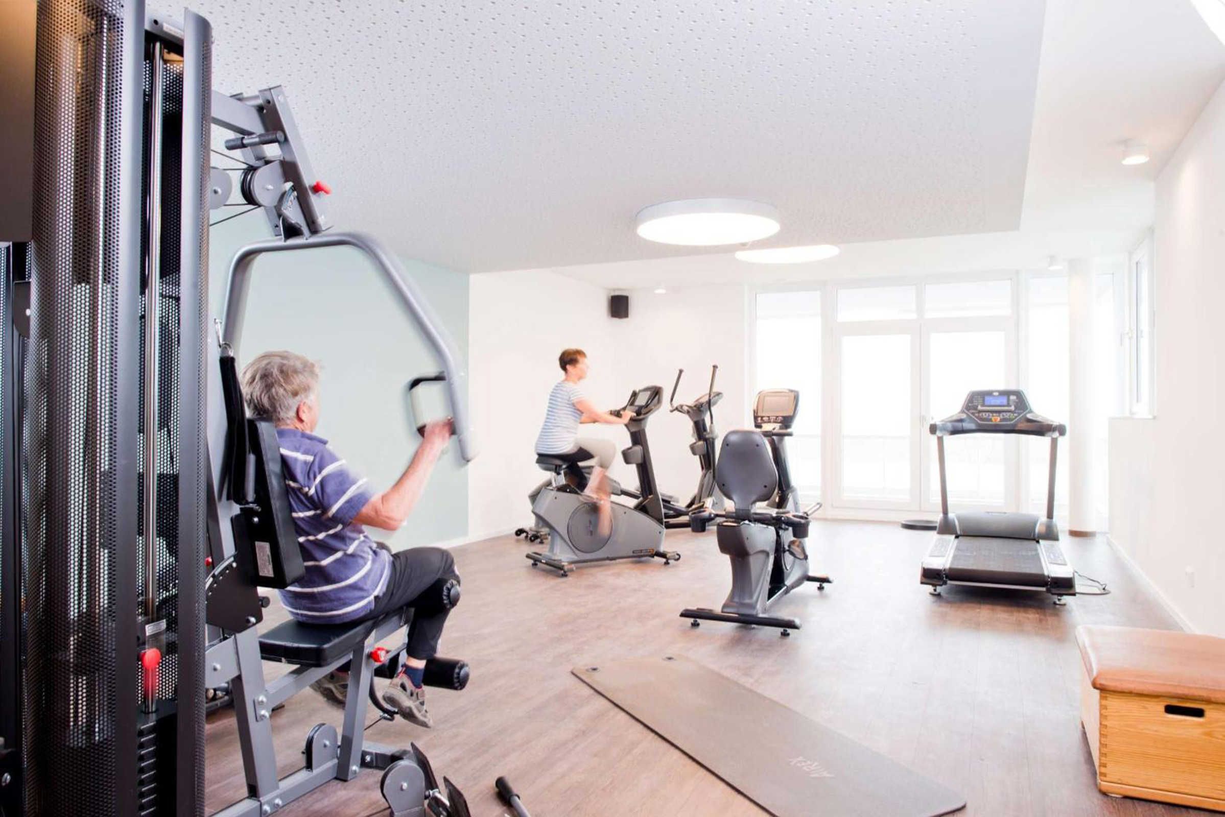 Im 1. Obergeschoß des Hauses H befindet sich auf 250 m² der Sauna- und Fitnessbereich. Zur Saunalandschaft gehören eine finnische Sauna, eine Bio-Licht Sauna und eine Infrarot-Sauna. Ein sehr geschmackvoll gestalteter Ruheraum, mit Ostseeblick, lädt zum Verweilen ein. Im angrenzenden Fitnessbereich finden die Gäste eine ausreichende Geräteauswahl, um auch im Urlaub etwas für Ihren Körper zu tun. Das Spielzimmer für die ganz kleinen Gäste schließt sich direkt dort an, so dass auch bei schlechten Wetter für Abwechslung gesorgt ist. Alle diese Einrichtungen stehen selbstverständlich allen Gästen zur Verfügung.