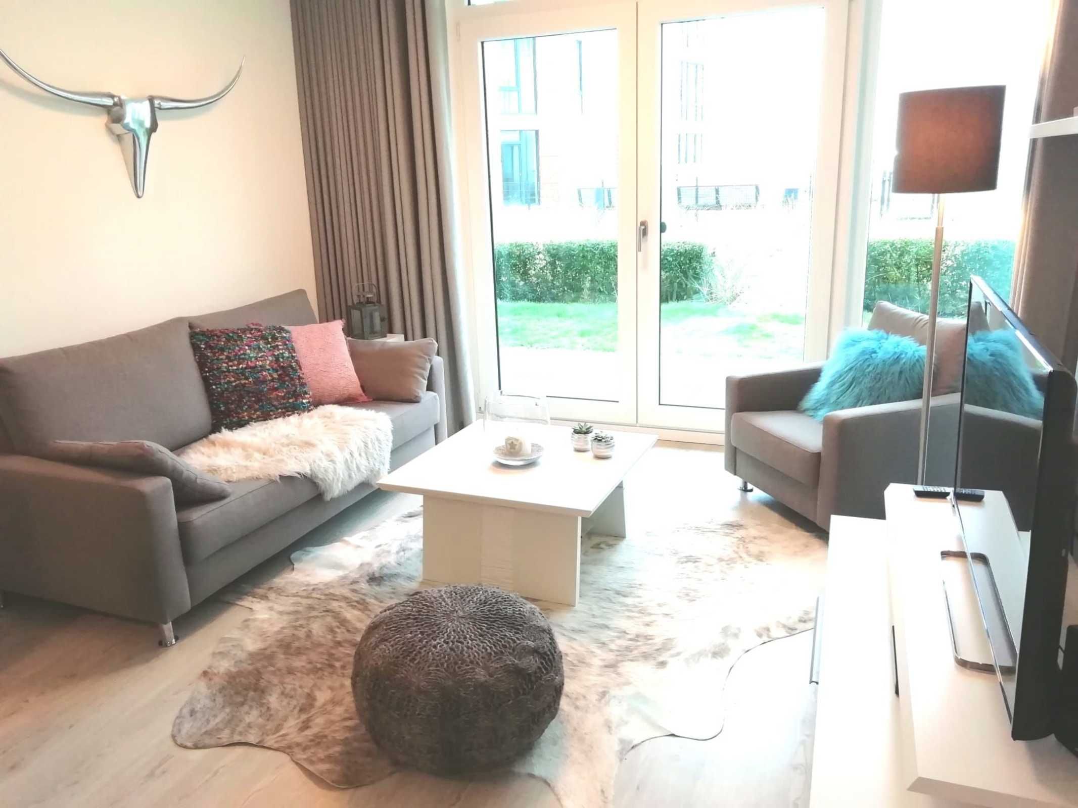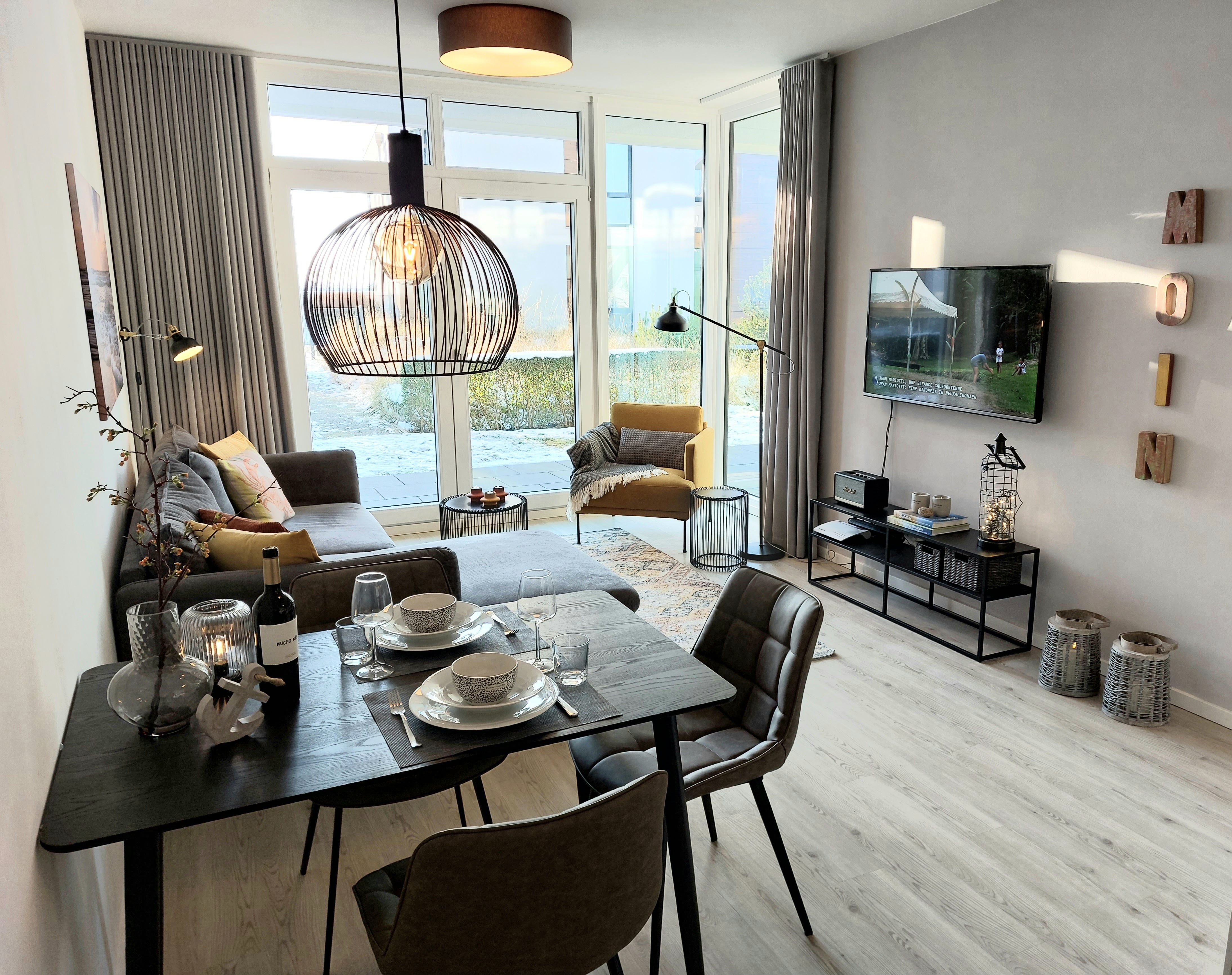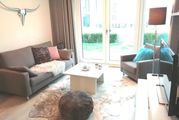 Die Ferienwohnung Sonnentraum ist wie folgt ausgestattet: 2 Zimmer-Wohnung auf 62 m² Wohnfläche, Badezimmer mit Dusche und Badewanne, Fussbodenheizung in der gesamten Wohnung, Wohn-/Esszimmer mit Schlafcouch (1,60 x 2 m) und Esstisch für 4 Personen, offene, moderne Küche mit Insel und allen elektronischen Geräten, großzügiges Schlafzimmer mit Boxspring-Bett (1,80 m x 2 m), große Sonnenterrasse mit ca. 25 m² und Kettler-Sitzmöbeln. Von der Terrasse hat man Seeblick.