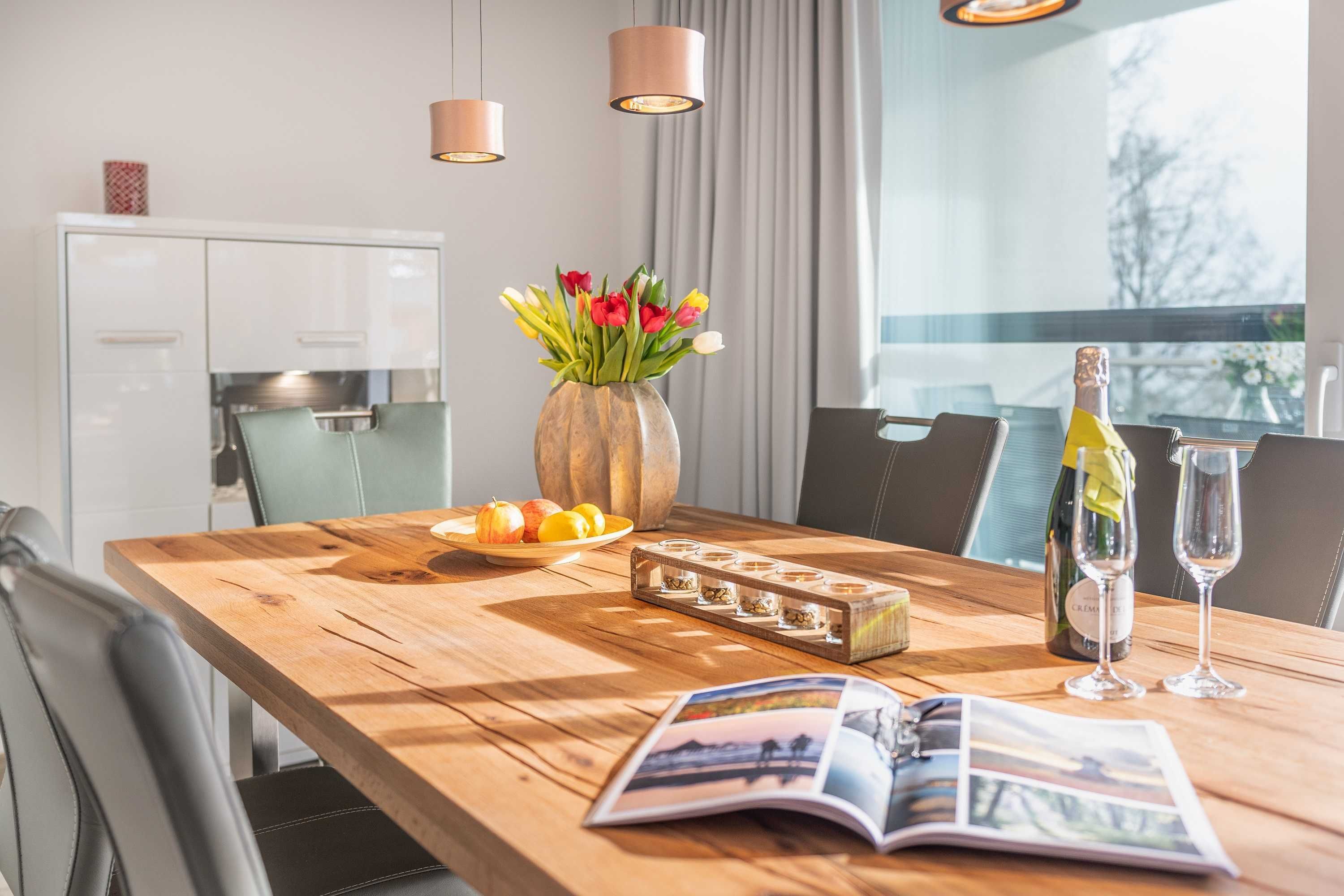 Alle Terrassenwohnungen und Appartements sind anspruchsvoll und modern ausgestattet. Großzügige Rasenflächen mit angelegten Gehwegen umgeben unsere Ferienhäuser. Einzelne Terrassen laden mit Sitzgelegenheiten an der Steilküste zum Verweilen ein.