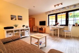 Ferienwohnung (Nr. 1) im Erdgeschoss ist für 2 bis 3 Personen (inkl. Kleinkind bis 3 Jahre) ausgestattet. Größe: ca. 40 m²