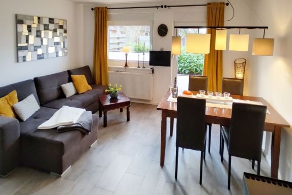 Wer im Urlaub gerne etwas geräumiger wohnt, ist im Urlauberdorf genau richtig! Die nur 350 Meter zum Strand der Ostsee gelegenen sind die familienfreundlichen Reihenhäuser mit Terrasse individuell eingerichtet und manche verfügen über zwei Schlafzimmer oder teilweise auch zwei Bäder. Der Wohnbereich erstreckt sich in den Häusern über zwei Ebenen und durch den vorhandenen Kaminofen entsteht ganzjährig eine gemütliche Atmosphäre. Zum verkehrsberuhigten Urlauberdorf mit altem Baumbestand gehört auch ein Spielplatz mit Rutsche, Klettergerüst, Tischtennisplatte, Sandkasten und Schaukel. In nur ca.400 Meter gelangen Sie in das Einkaufszentrum von Boltenhagen, wo sich verschiedene Einkaufsmöglichkeiten sowie eine Poststelle befinden. Das familienfreundliche Reihenhaus im Urlauberdorf 23a besitzt eine Wohnfläche von 60qm und ist bestens ausgestattet für bis zu 5 Personen. Zwei separate Schlafzimmer sowie ein Gäste-WC sind in diesem Haus vorhanden. PKW-Stellplatz kostenfrei. Bitte beachten Sie, dass es sich um ein Angebot für Nichtraucher handelt und Haustiere in diesem Ferienhaus nicht gestattet sind.