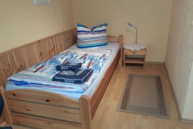 Das Einzelzimmer ist ca. 10 m² groß unfd befindet sich im EG. Es ist ausgestattet mit Einzelbett, Schrank, kleiner Sitzecke und TV. Alle Zimmer verfügen über DU und WC.