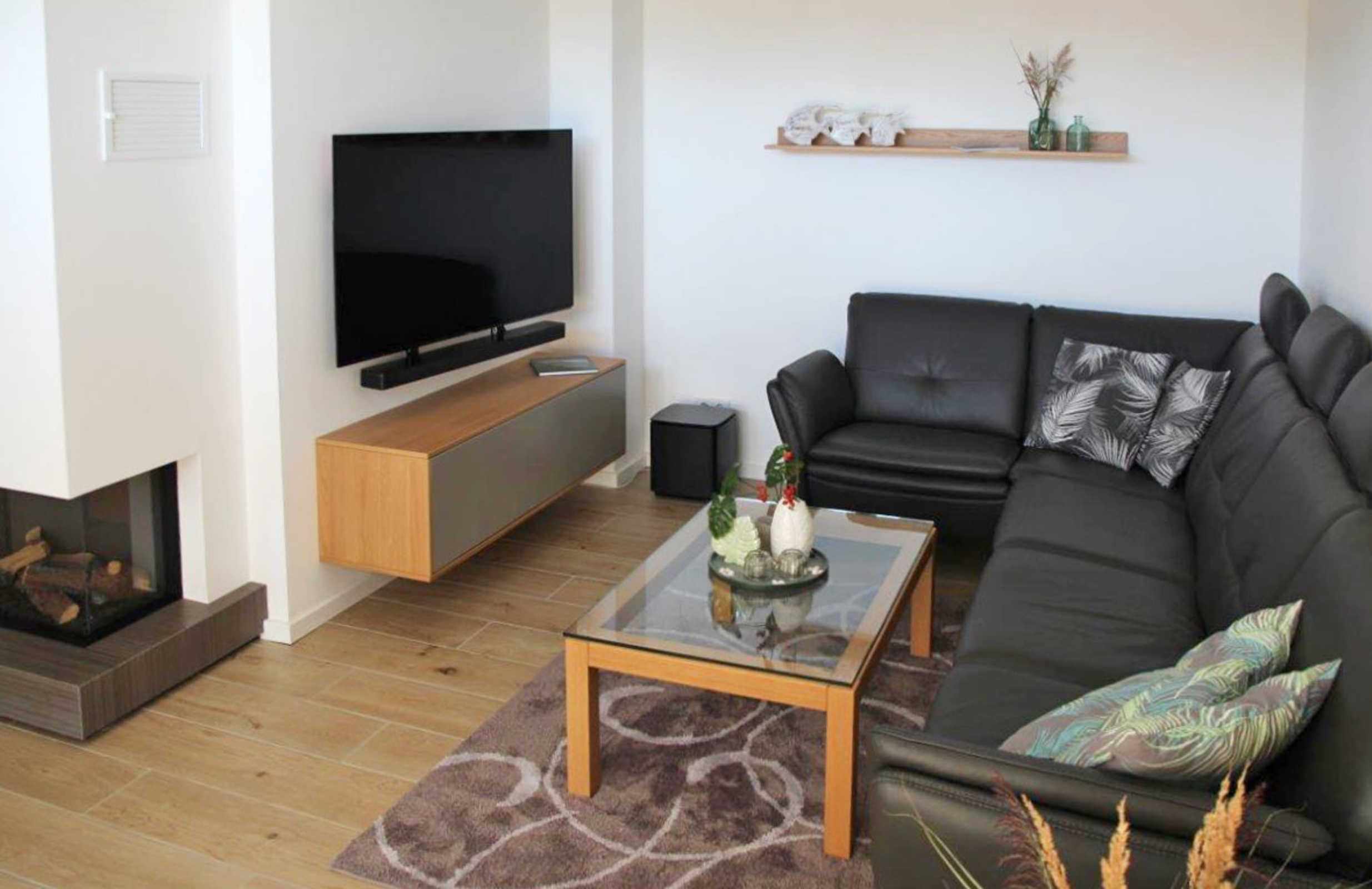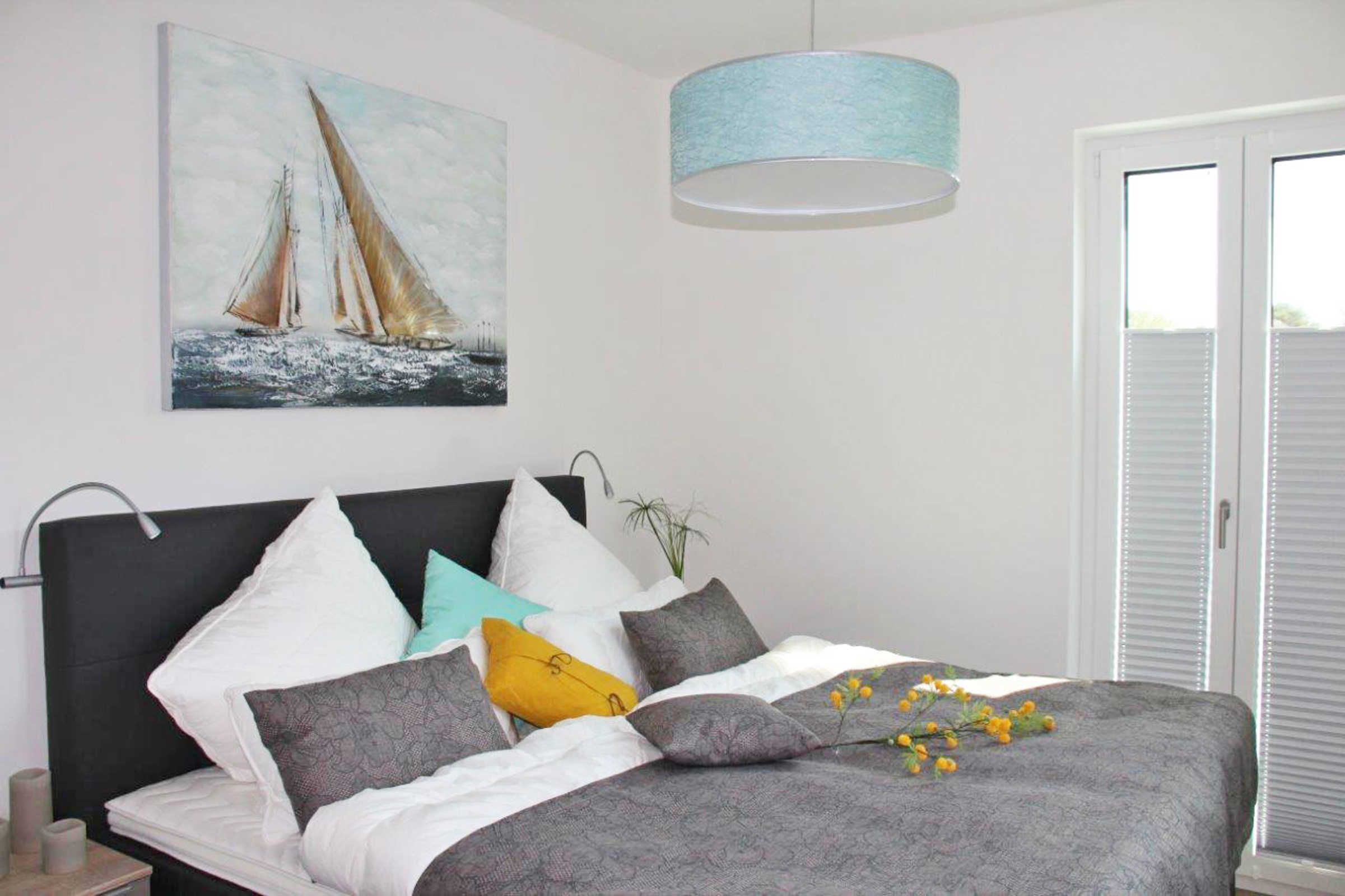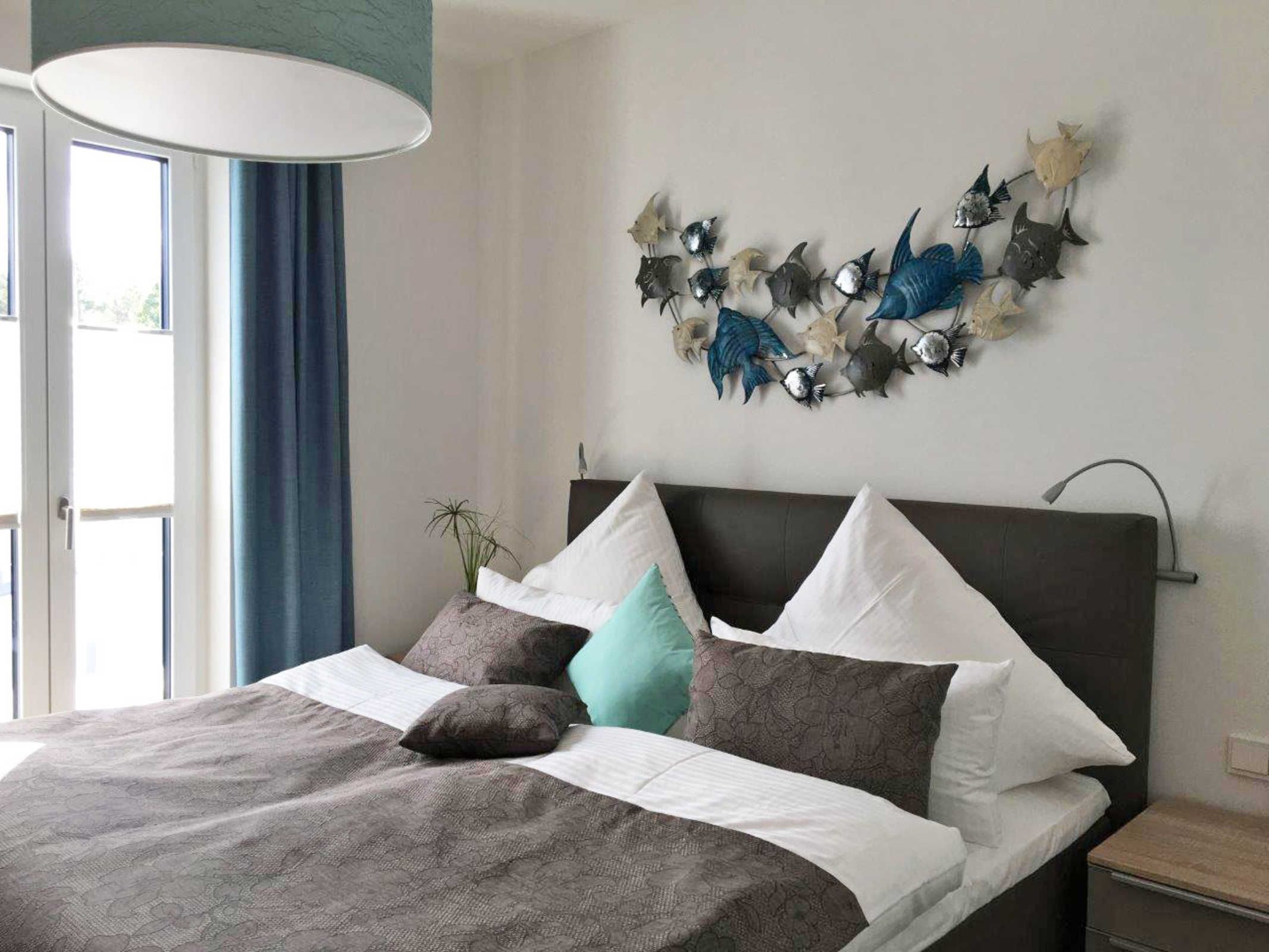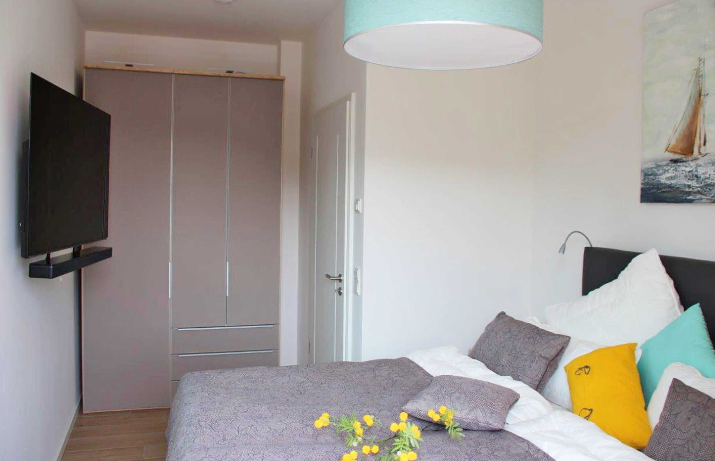 Es gibt 2 Schlafzimmer mit jeweils einem Doppelbett, Boxspringbett 200 x 180 cm sowie einen Schrank mit körperhohen Innenspiegel. Ein Schlafzimmer mit TV 55 OLED-TV mit bluetoothfähiger Soundbar.