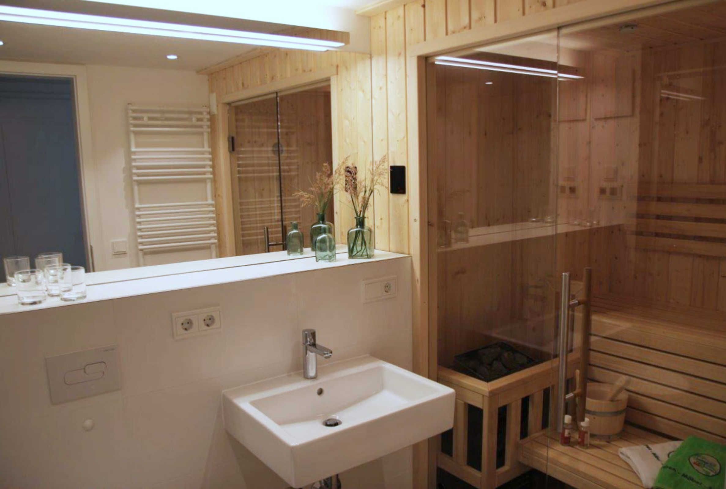Ein besonderes Highlight ist die eigene Sauna in dieser Wohnung. Luxus pur.