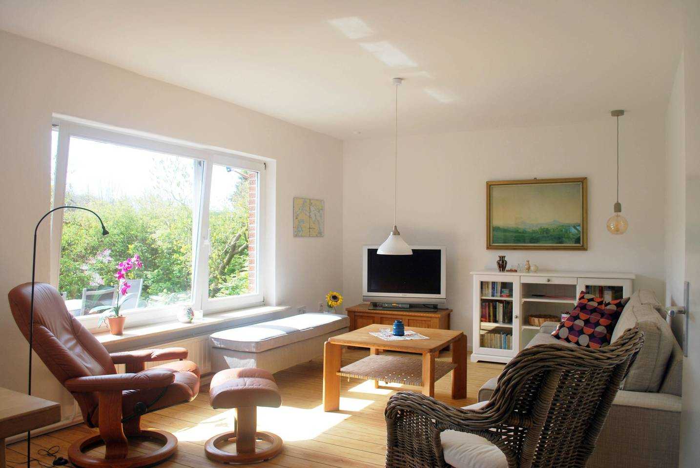 Die Ferienwohnung befindet sich im Erdgeschoss des Hauses. Sie ist bis zu 5 Personen und daher besonders für Familien mit Kindern geeignet. Hier finden Sie eine Küche mit Zugang zum Garten, ein Wohnzimmer, ein Bad und 2 Schlafzimmer. Es stehen ein Kinderbett und ein Kinderhochstuhl zur Verfügung.
