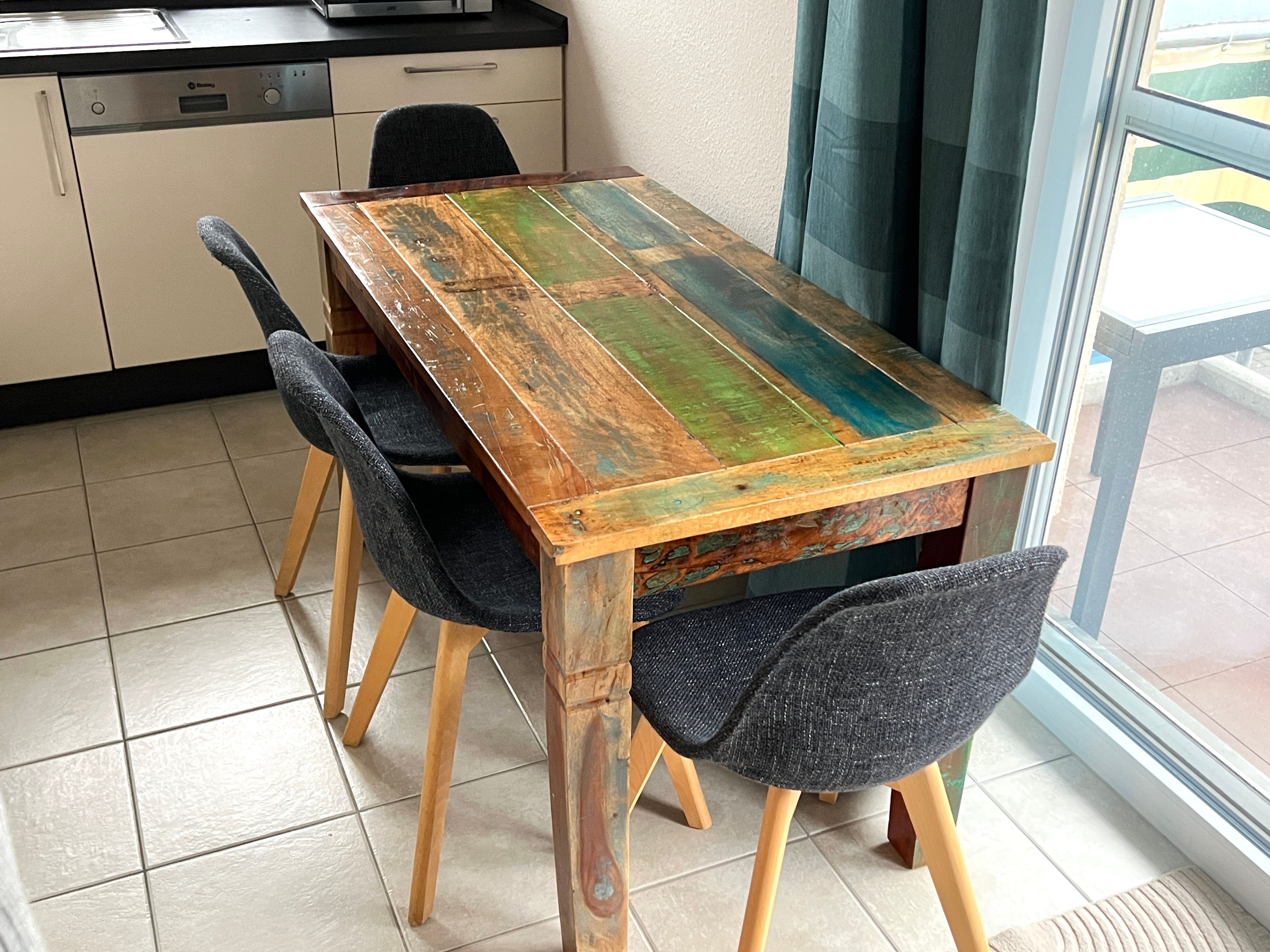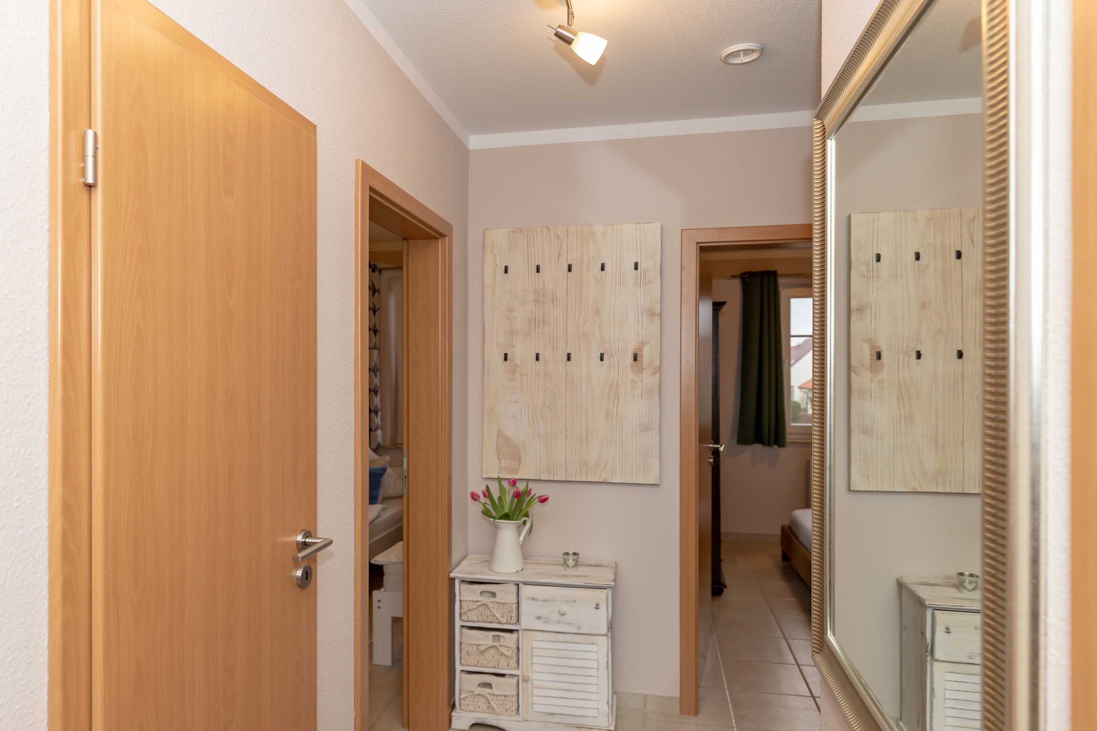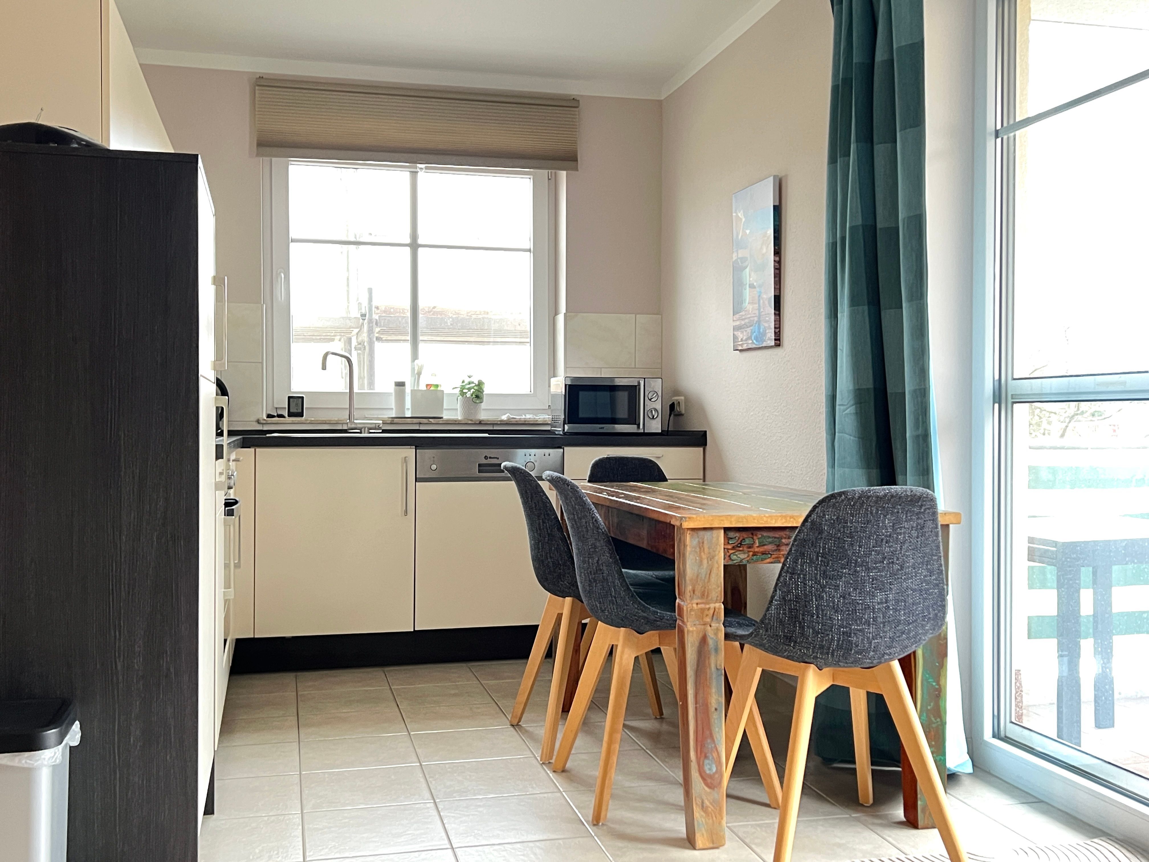 Die neu renovierte Ferienwohnung Wellenreiter lädt Sie ein, Ihre Zeit zu genießen. Bei gutem Wetter beginnen Sie Ihren Tag auf dem sonnigen Balkon mit Markise. Die Wohnung ist strandnah gelegen und für maximal 4 Personen plus Baby. Sie erreichen den Strandzugang, die Teufelsschlucht in ca. 3 min. Es gibt 2 Schlafräume und eine komplette Babyausstattung. In einem der Schlafzimmer befindet sich ein Doppelbett (180 x 200 cm) und in dem anderen zwei Einzelbetten (90 x 200 cm). Das helle, moderne Wohnzimmer mit offener, voll ausgestatteter Einbauküche bietet Ihnen die perfekte Möglichkeit Ihren Urlaub auch bei kälteren Temperaturen zu genießen. Die Ferienwohnung befindet sich in einem ruhigen Wohngebiet und einem großen Spielplatz. Von dort aus ist alles fußläufig erreichbar. Der Strand, Supermarkt, Bäcker, Restaurants und Fahrradverleihe sind nur wenige Gehminuten entfernt. Ebenso ist es nicht weit zum Busbahnhof und zum Hafen am Salzhaff.