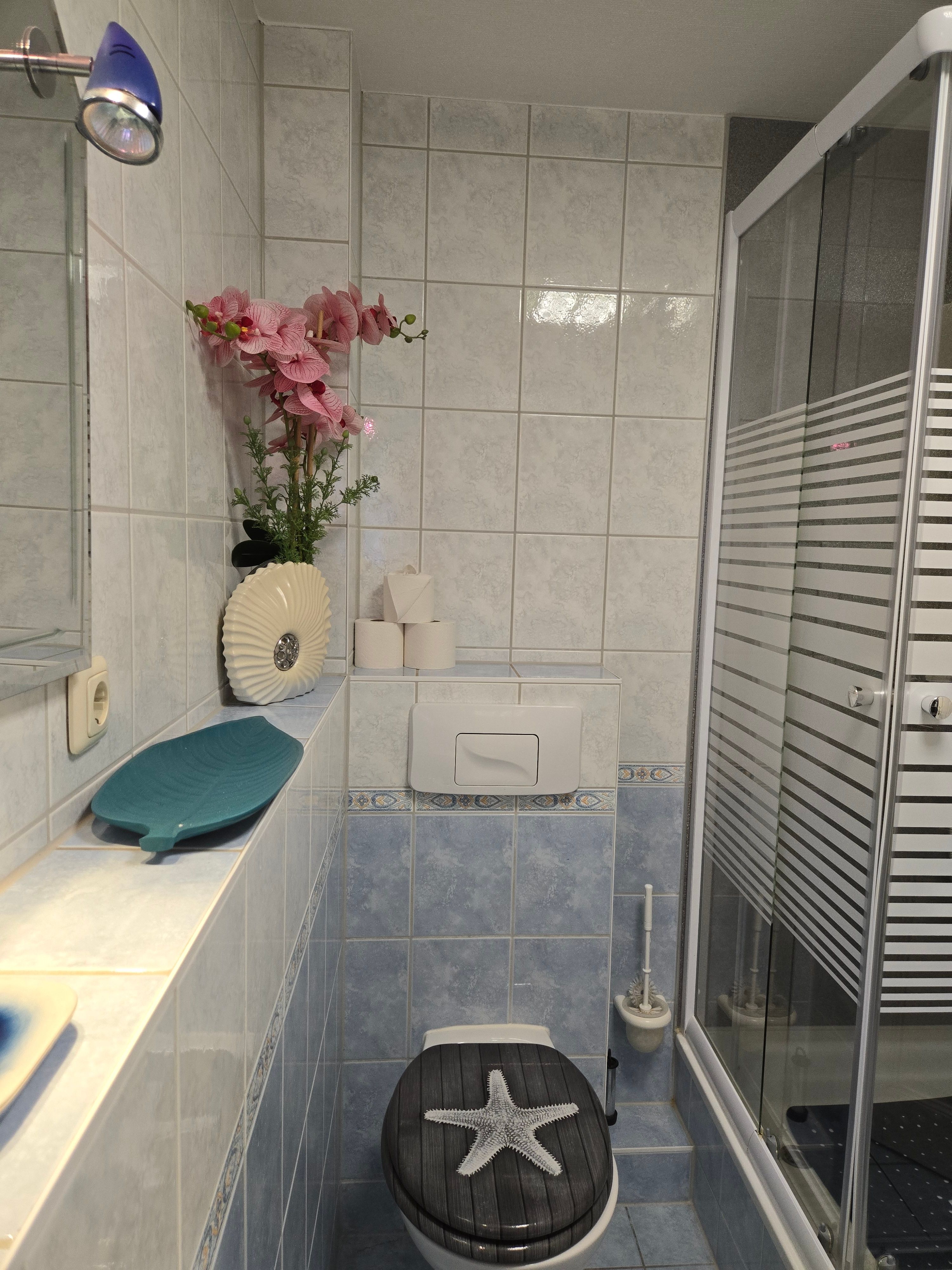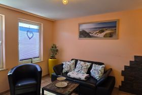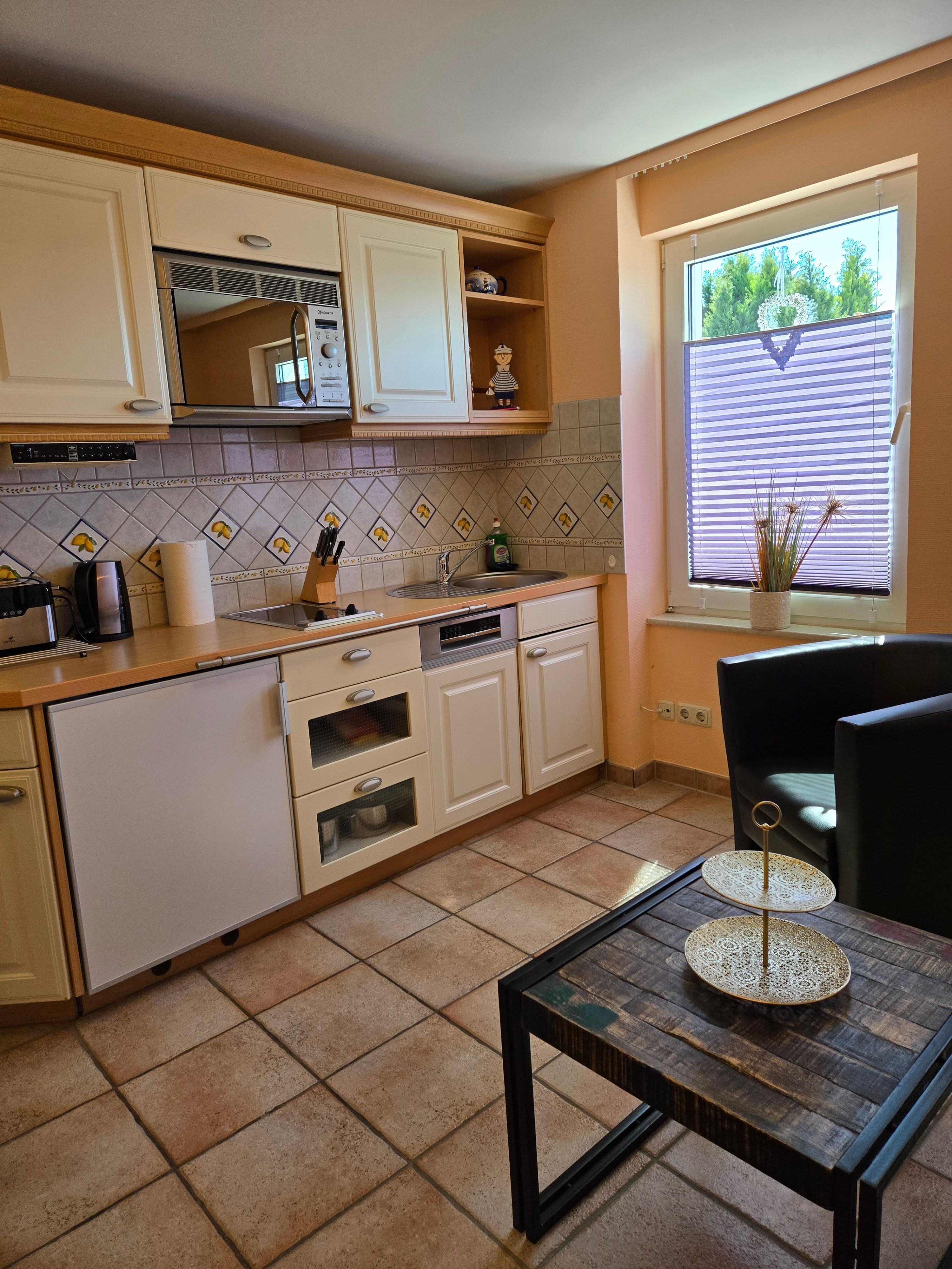 Die Wohnung ist komfortabel und sehr geschmackvoll eingerichtet und verfügt über einen Wohnraum mit Sitzecke, Essplatz für drei Personen und einer Einbauküche, ein Bad mit Dusche und WC sowie zwei separaten Schlafzimmern mit Doppelbett bzw französischem Bett.Die komplett ausgestattete Einbauküche beinhaltet neben Cerankochfeld und Geschirrspüler auch eine Mikrowelle.Ein kostenloser Pkw-Stellplatz steht ebenfalls zu Ihrer Verfügung.Bettwäsche ist im Preis enthalten, Handtücher müssen von Ihnen mitgebracht werden.