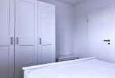 Der Schlafraum besitzt ein Doppelbett (1,60 x 2,00 m) mit getrennten Matratzen und einem Topper sowie einem Kleiderschrank mit genügend Stauraum. Bei Bedarf kann dort ein Kinderreisebett aufgestellt werden.