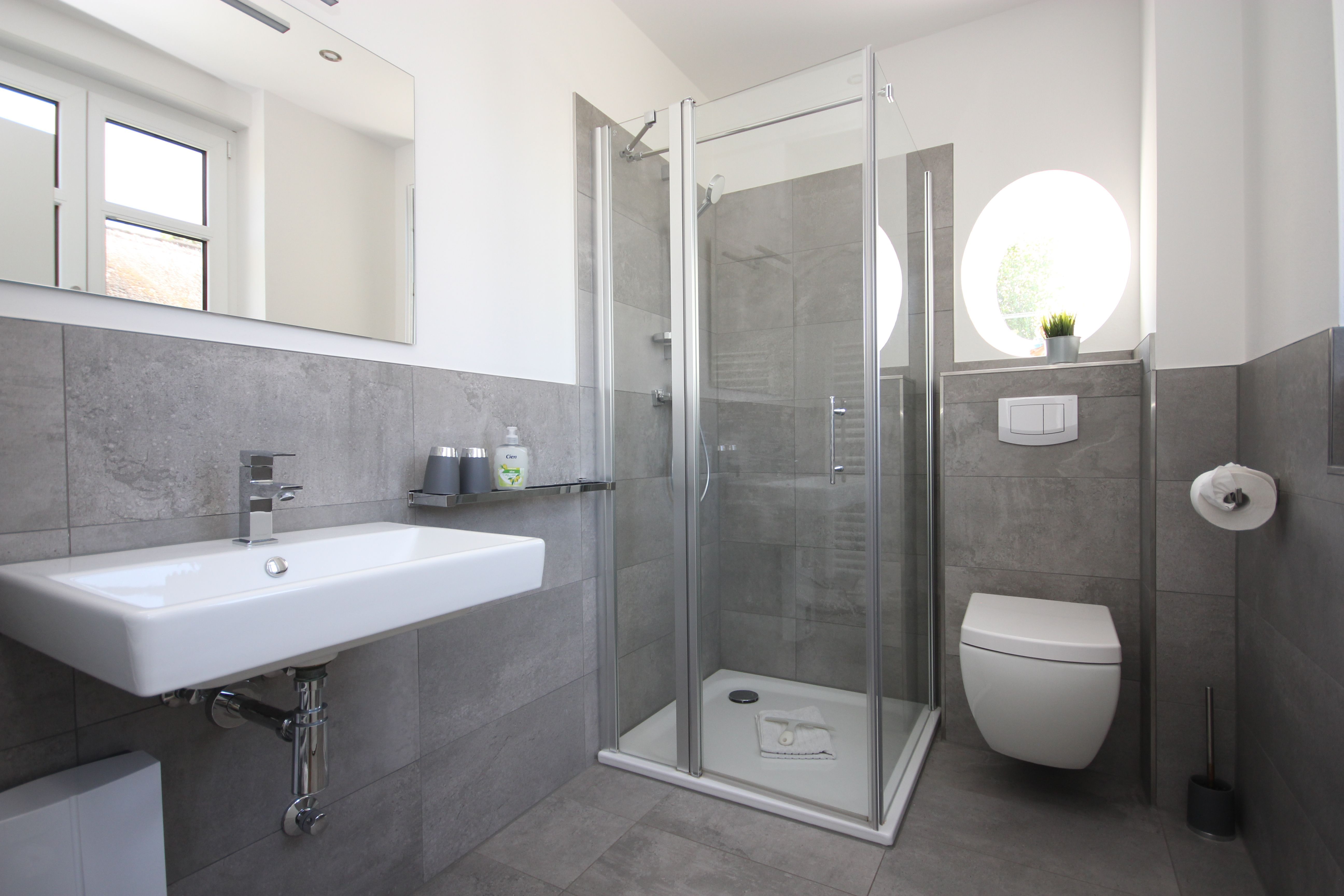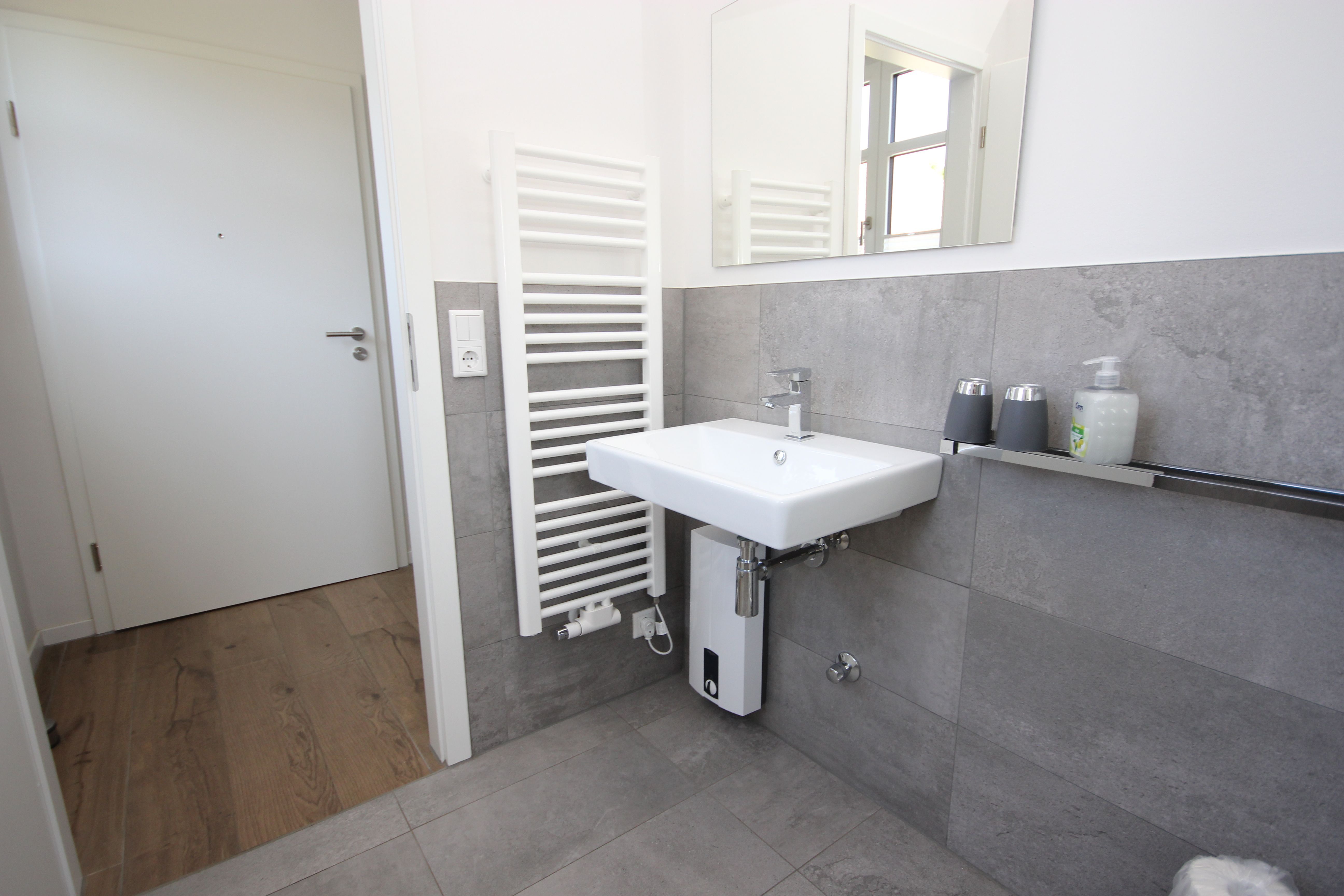 Das Bad, mit der ebenerdiger Dusche sowie Haarföhn, runden die Einrichtung ab.