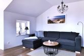 Die offene Wohnküche wurde mit SAT-TV, kostenlosem WLAN-Gastzugang, einer Küchenzeile und einer Schlafcouch ausgestattet.