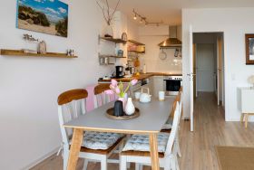 Der Ankerplatz 57 ist ein geschmackvoll eingerichtetes 2-Zimmer-Apartment im 3. Stock. Vom Parkplatz gelangt man über eine Treppenhausanlage zur Wohnung.