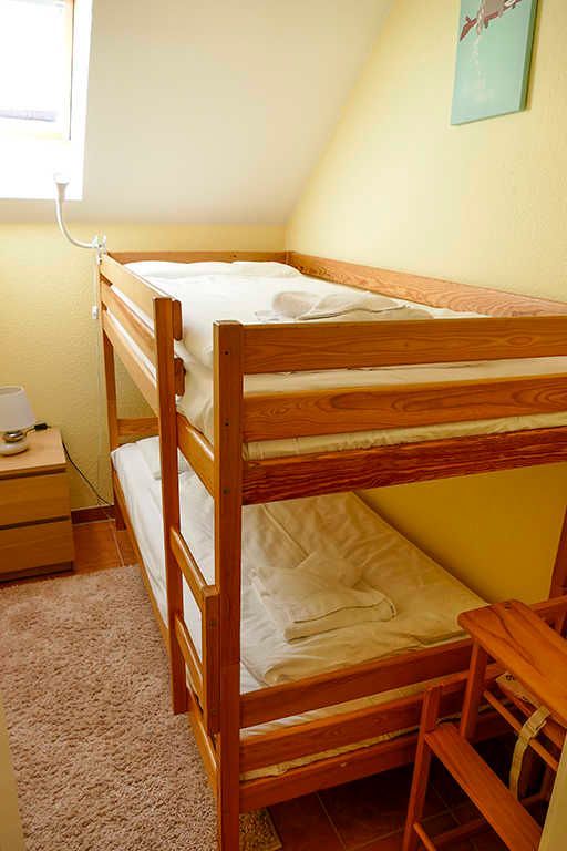 Ein kleines Kinderzimmer mit Doppelstockbett.
