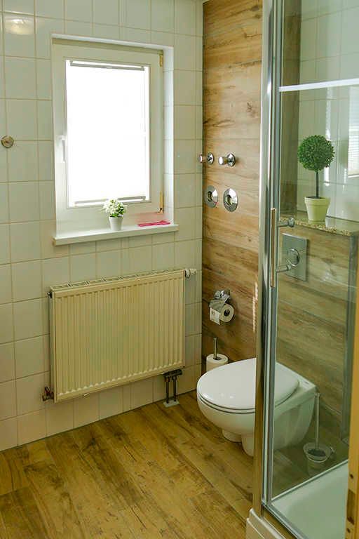 Das kleine Bad ist ausgestattet mit Dusche/ WC und Fön .
