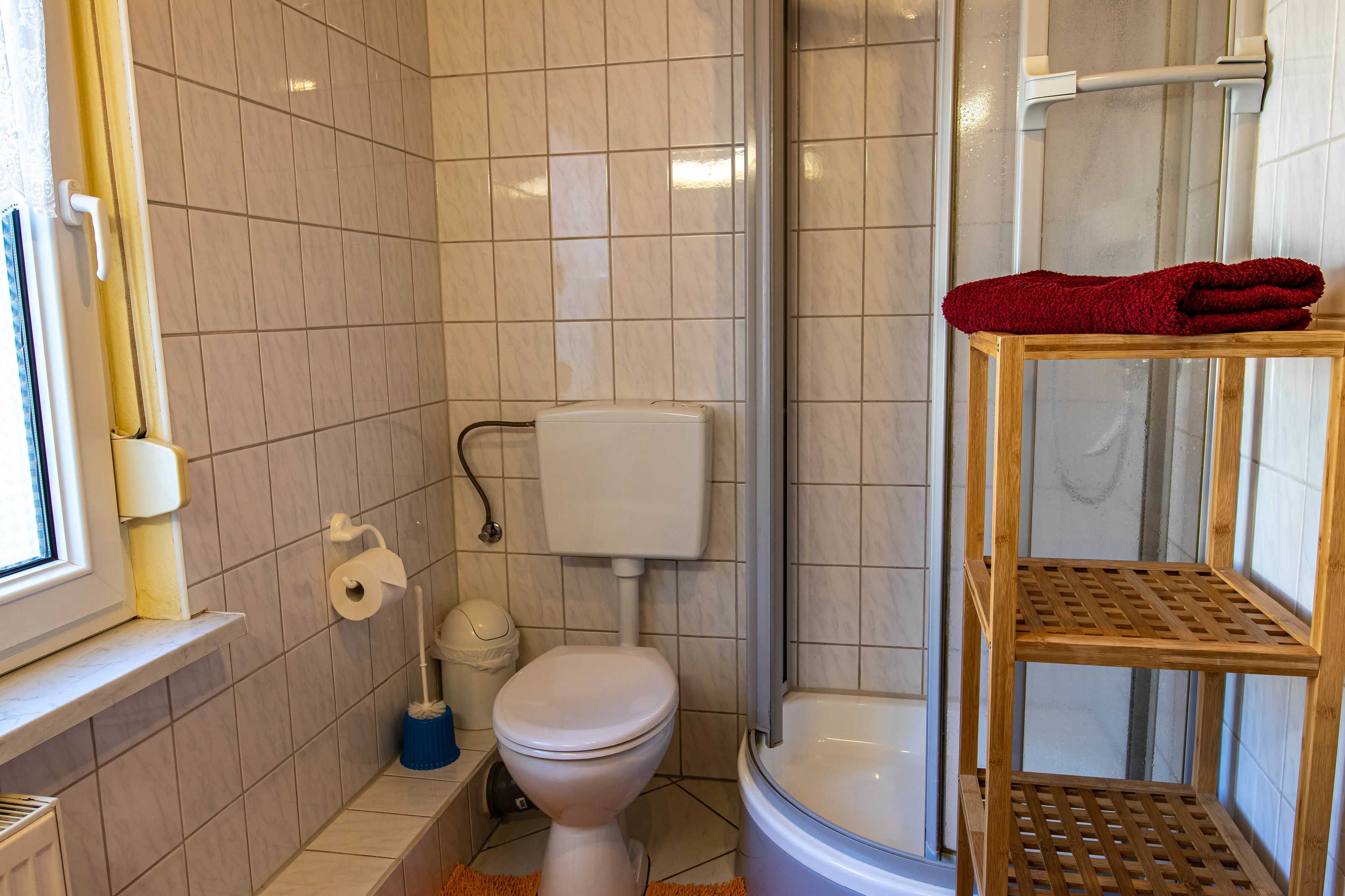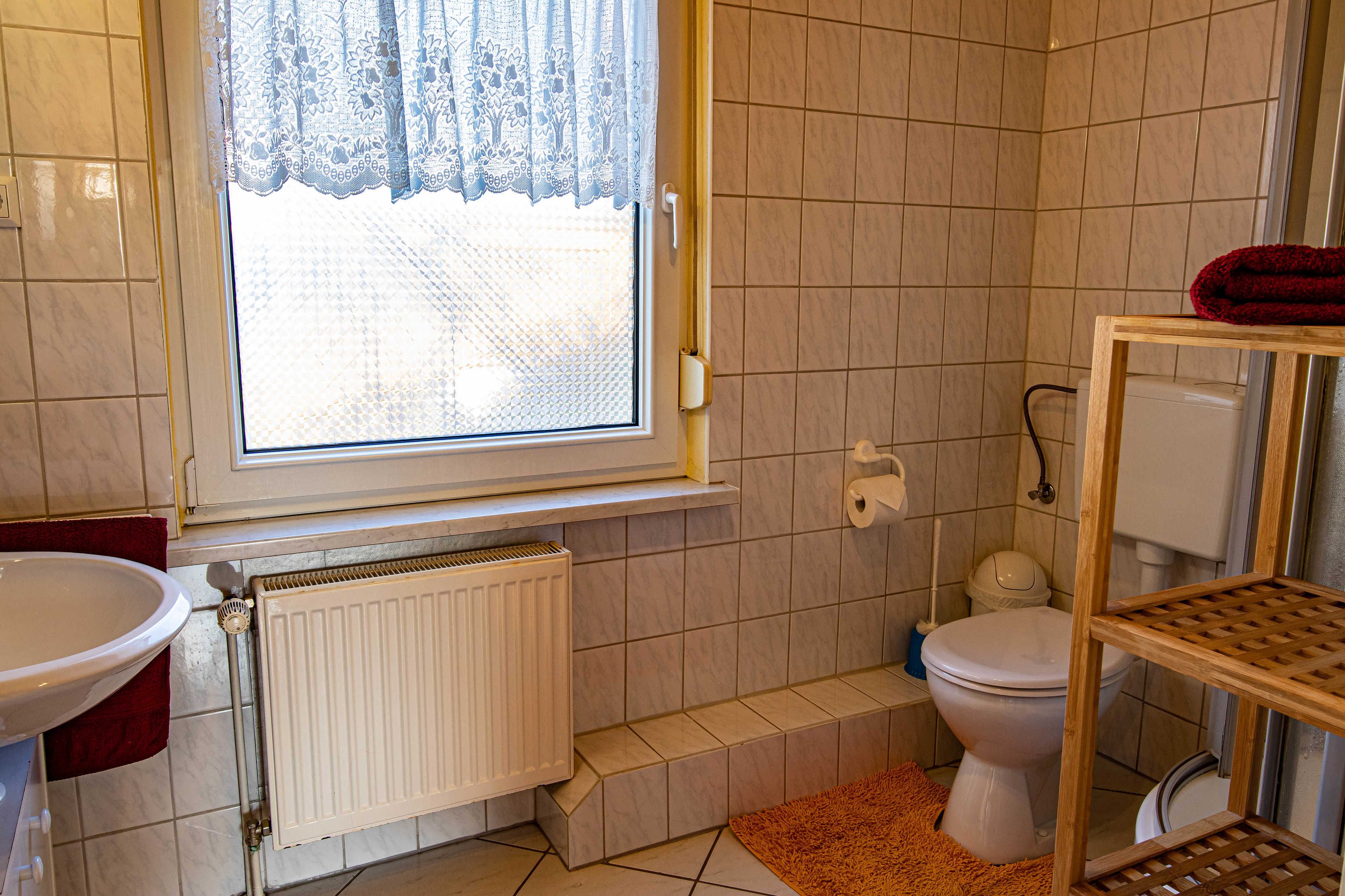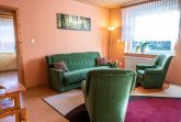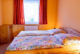 Die gemütliche Nichtraucher-Ferienwohnung mit separaten Eingang ist liebevoll eingerichtet und praktisch-funktional ausgestattet. Im Wohnzimmer stehen Ihnen eine gemütliche Couch, TV und Gesellschaftsspiele zur Verfügung. Die zwei Schlafzimmer sind mit einem Doppelbett (180x190) bzw. drei Einzelbetten (90x190 und 90x200) ausgestattet. Beide Zimmer verfügen jeweils über einen Schrank, indem Sie Ihre Sachen unterbringen können. Die lichtdurchflutete Küche mit Esstisch für 5 Personen bietet eine funktionale Küchenausstattung mit Kühlschrank, Herd, Backofen und Mikrowelle. Im Tageslichtbad können Sie entspannt duschen und finden weiterhin ein Waschbecken und WC vor.