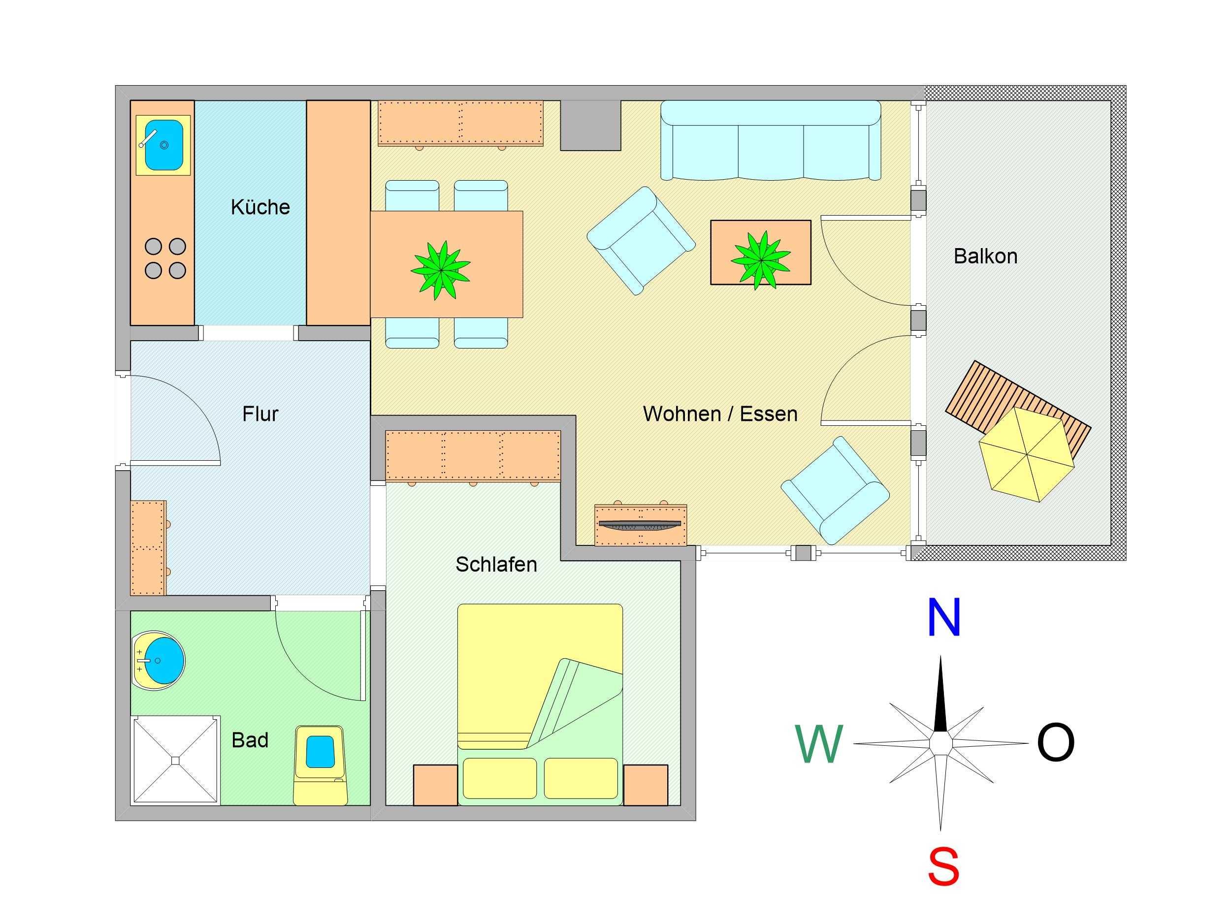 In der Residenz Seestern, im 1. Obergeschoss, empfängt Sie die liebevoll eingerichtete Wohnung 24 mit einer Wohnfläche von ca. 52 m². Die charmante 2-Raum-Ferienwohnung bietet Platz für bis zu drei Personen ideal geeignet für zwei Erwachsene und ein Kind bis maximal 14 Jahre. Sie verfügt über ein separates Schlafzimmer, ein Badezimmer, einen gemütlichen Wohn- und Essbereich mit offener Küche sowie einen möblierten Balkon, der nach Osten ausgerichtet ist und zum Sonnenfrühstück einlädt.