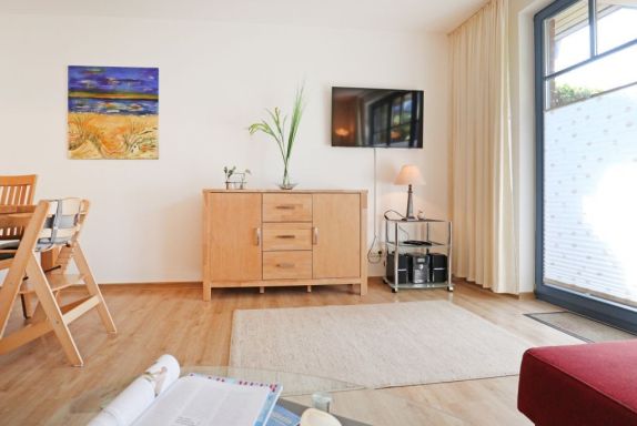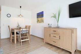 Die 2- Zimmer Ferienwohnung Papillon 12-3 ist komfortabel möbliert und besitzt eine Wohnfläche von 55qm. Das schöne Appartement kann mit bis zu 4 Personen gebucht werden. Der Wohn-/Essbereich ist mit einem Sofa, das auch als Schlafsofa für zwei Personen nutzbar ist eingerichtet und weitere Sitzmöglichkeiten sowie ein Fernseher, Musikanlage, kostenfreie WLAN- Nutzung sind vorhanden. Die saisonal möblierte Süd- Terrasse lädt zum Entspannen ein. In der modernen Wohnküche stehen Ceranherd, Backofen, Mikrowelle, Geschirrspüler sowie Kühlschrank mit integr. Gefrierfach, Kaffeemaschine, Toaster und Wasserkocher bereit. Ihre Mahlzeiten nehmen Sie am Esstisch zu sich. Das separate Schlafzimmer empfängt Sie mit einem bequemen Doppelbett. Ihre Urlaubsgarderobe platzieren Sie im Kleiderschrank. Das zugehörige Duschbad mit Waschtisch, WC ist modernisiert. Gegen Gebühr können Sie im Untergeschoß des Hauses Waschmaschine und Wäschetrockner nutzen. Für Kleinkinder befinden sich ein Hochstuhl, Kinderbett im Appartement. Ihren PKW parken Sie kostenfrei auf dem wohnungseigenen Außenstellplatz. Bitte beachten Sie, dass es sich um eine Nichtraucherwohnung handelt. Haustiere sind nicht erlaubt. Zur Ostsee gelangen Sie in nur ca. 250 Meter.