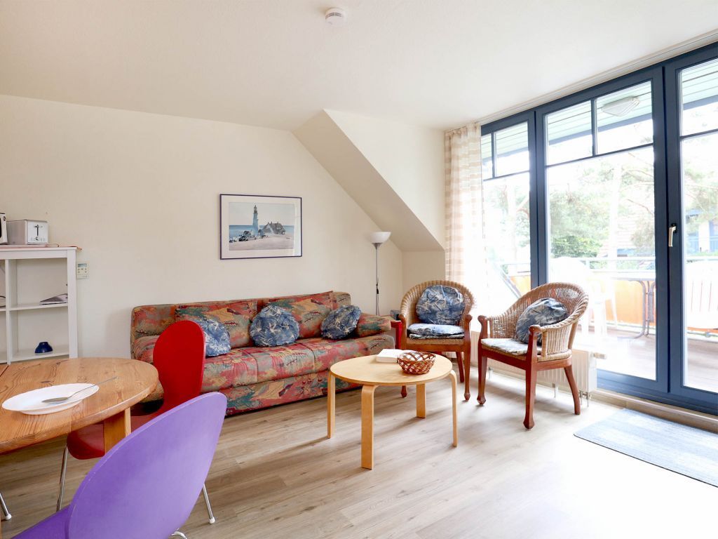 Die 4-Zimmer-Maisonetten-Ferienwohnung Papillon 11-8 ist ein familienfreundliches Appartement mit einer Wohnfläche von 65qm. Mit bis zu 6 Personen können Sie hier einen erholsamen Urlaub verbringen. Der großzügige Wohn-/Essbereich ist mit einem Sofa, ausziehbar als Schlafsofa mit zwei weiteren Schlafgelegenheiten sowie weiteren Sitzmöglichkeiten und einem Esstisch möbliert. Ein Fernsehgerät, Musikanlage und kostenfreie WLAN- Nutzung bieten Abwechslung. Vom Wohnbereich betritt man den saisonal möblierten Süd-Balkon. In der Wohnküche stehen Ceranherd, Backofen, Mikrowelle, Geschirrspüler sowie Kühlschrank mit integr. Gefrierfach, Kaffeemaschine, Toaster und Wasserkocher bereit. Ebenso befinden sich auf dieser Wohnebene ein separates Schlafzimmer mit zwei Einzelbetten und Kleiderschrank. Das Duschbad ist mit zwei Waschtischen und WC ausgestattet. Über eine Treppe im Wohnbereich gelangen Sie in die obere Ebene mit zwei weiteren Schlafzimmern. Eines mit Doppelbett 1,60m mal 2,00m und Kleiderschrank. Das dritte Schlafzimmer mit Doppelbett 1,80m mal 2,00m, Kleiderschrank. Gegen Gebühr können Sie im Untergeschoß des Hauses Waschmaschine und Wäschetrockner nutzen. Ein Kinderhochstuhl sowie ein Kinderreisebett, Kinderspielzeug stehen ohne zusätzliche Gebühr bereit. Ihren PKW parken Sie kostenfrei auf dem wohnungseigenen Außenstellplatz. Bitte beachten Sie, dass es sich um eine Nichtraucherwohnung handelt. Haustiere sind nicht gestattet. Zur Ostsee gelangen Sie in nur ca. 250 Meter.