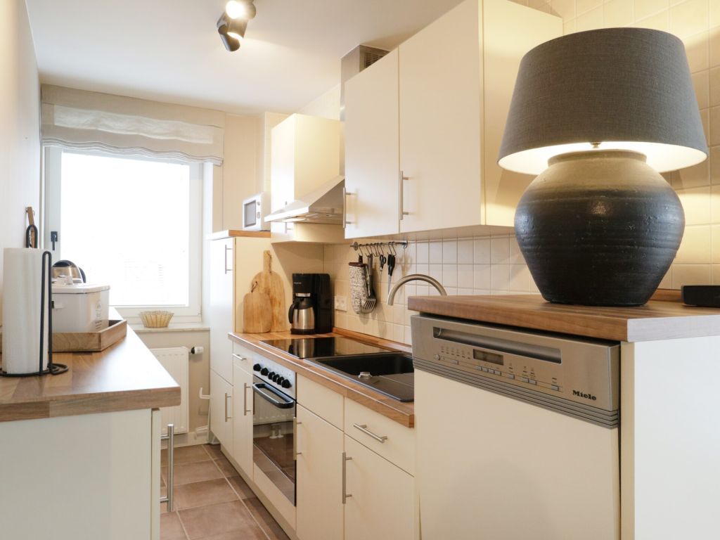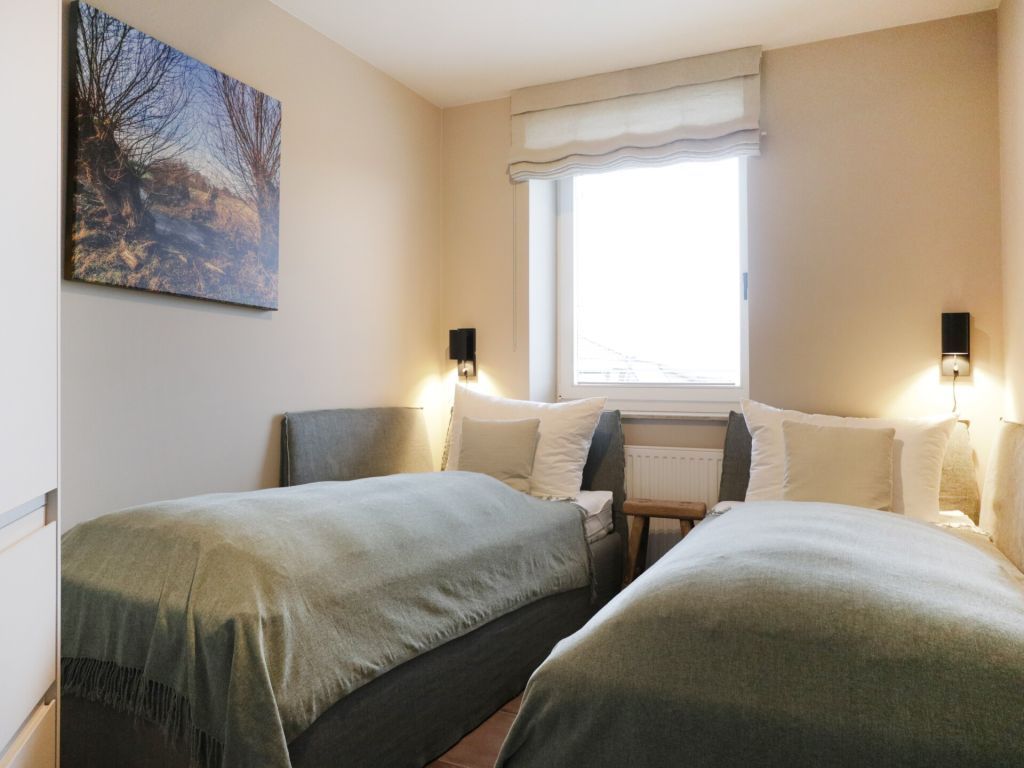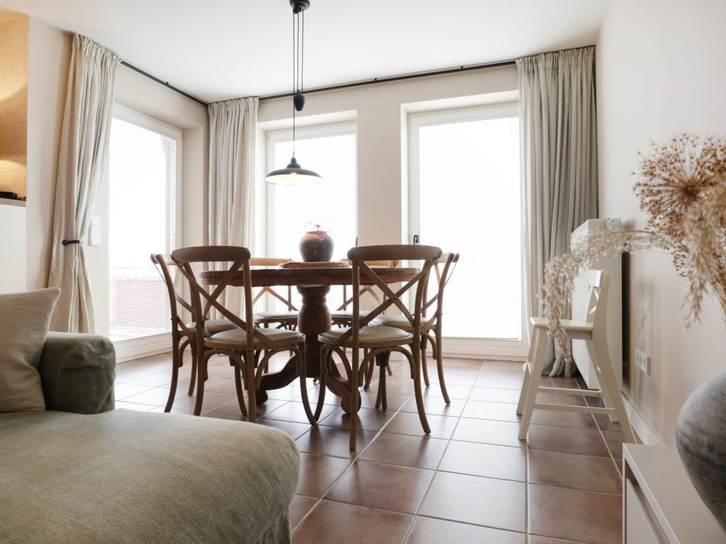Die 3-Zimmer-Ferienwohnung Nr.11 im Kastanienhof Boltenhagen, besitzt eine Wohnfläche von 61qm und kann mit max. 4 Personen belegt werden. Die Wohnung befindet sich im 2. Obergeschoss und verwöhnt mit einem Süd Balkon. Der gehoben möblierte Wohn-/Essbereich mit Balkonzugang, ist mit einem Komfortsofa sowie einem Esstisch eingerichtet. Ein Fernseher, Musikanlage Bose Sound Box und gebührenfreies WLAN sind ebenfalls vorhanden. Eine offene, bestens ausgestattete Wohnküche ermöglicht die Eigenversorgung mit: Ceranfeldherd, Backofen, Mikrowelle, Dunstabzug, Kühlschrank mit integr. Gefrierfach, Kaffeemaschine, Wasserkocher, Toaster, Geschirrspüler u.v.m. Sie speisen an einem schönen Esstisch im Wohnbereich, oder gerne während der wärmeren Jahreszeit auf dem saisonal möblierten Balkon in südliche Ausrichtung. Für kleine Kinder steht ein Hochstuhl in der Wohnung bereit. Das Ferienappartement besitzt zwei separate Wohlfühlschlafzimmer. Eines der Schlafzimmer ist mit einem Komfort Doppelbett und einem großen Kleiderschrank eingerichtet. Das zweite Schlafzimmer lädt mit zwei Einzelbetten zum Wohlfühlen ein.