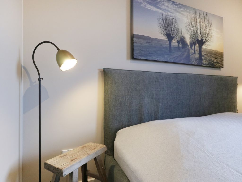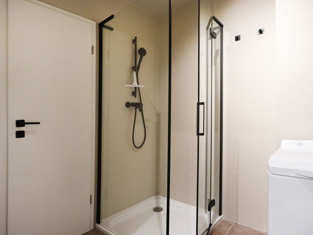 Zugehörig ist ein modernisiertes Duschbad mit Waschtisch, Handtuchheizung, Föhn und WC sowie Fußbodenheizung.  Auch eine Waschmaschine kann genutzt werden.