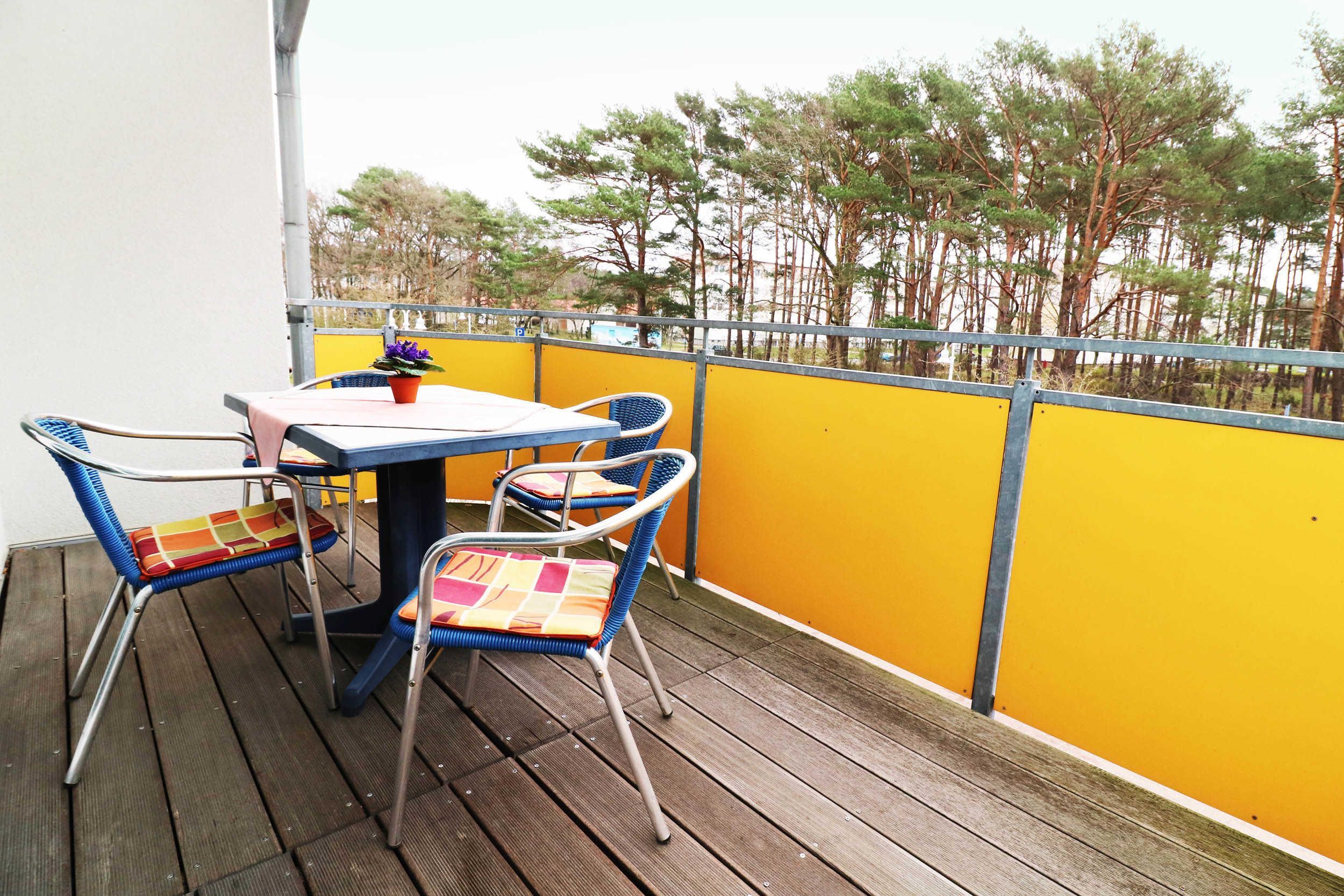 Jede Ferienwohnung verfügt über einen großen Balkon, außer die Erdgeschosswohnung, diese verfügt über eine kleine Terrasse zum Parkplatz.