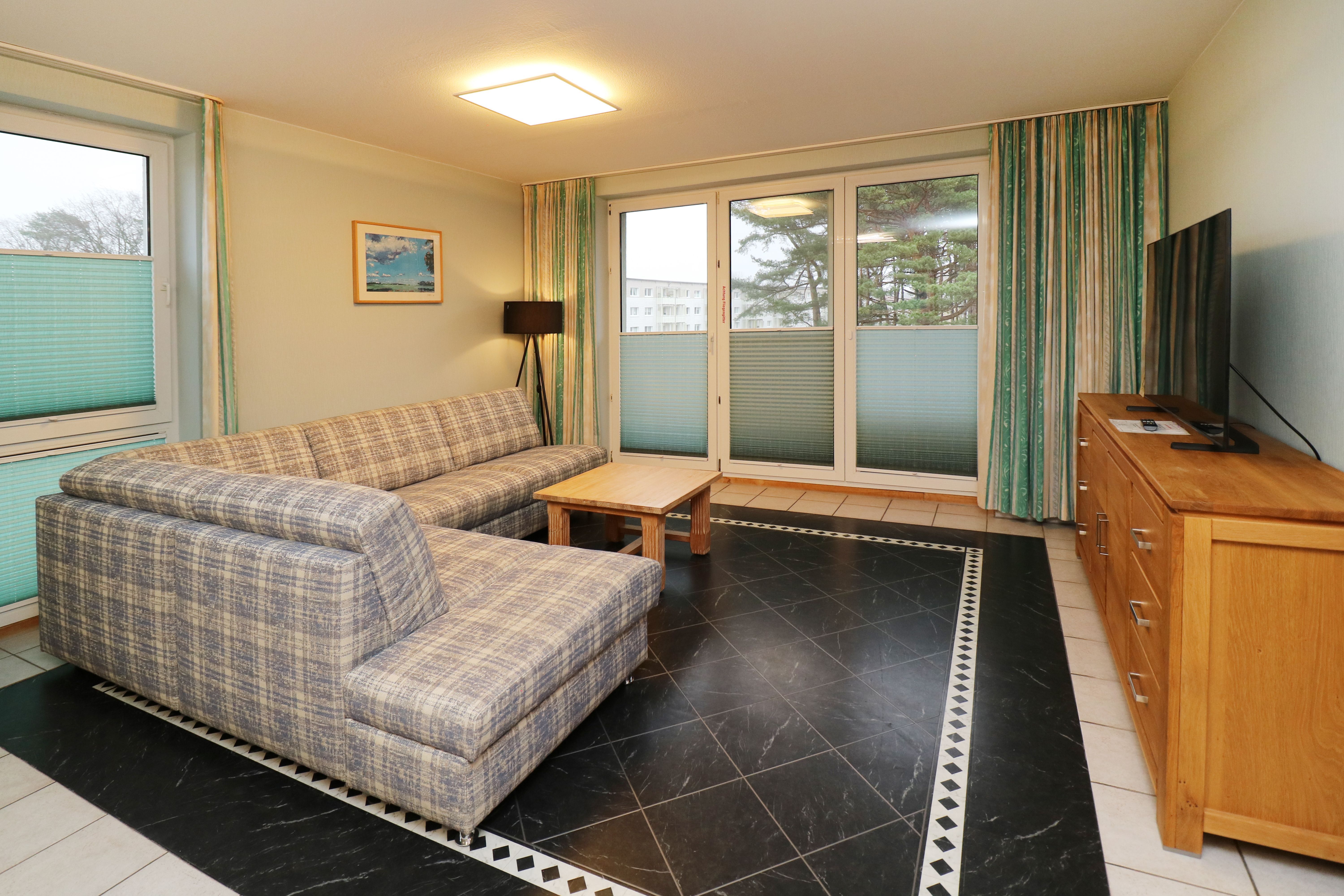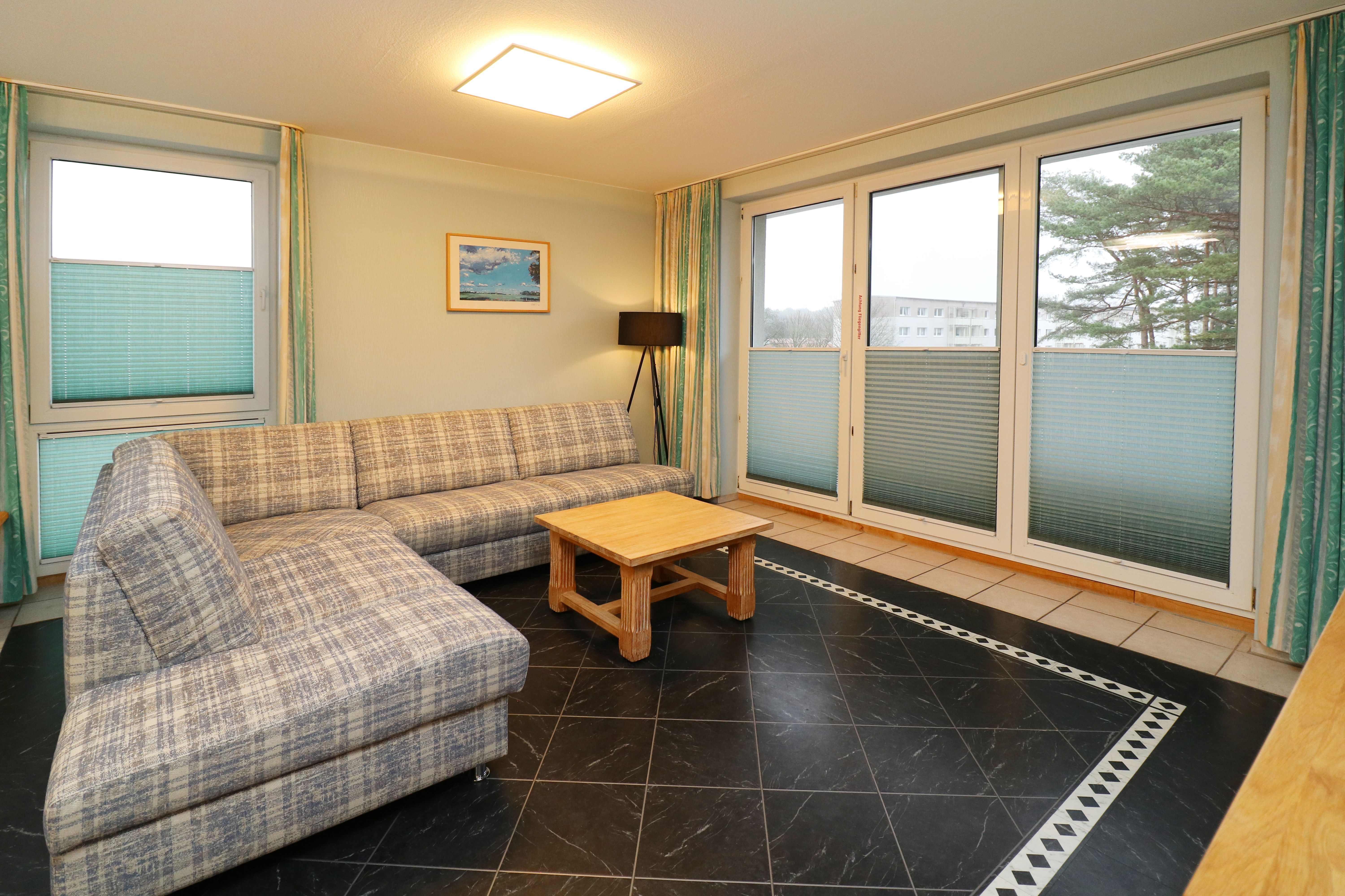 Die Wohnung verfügt über einen großen Balkon zur belebten Strandstraße mit schönem Weitblick.