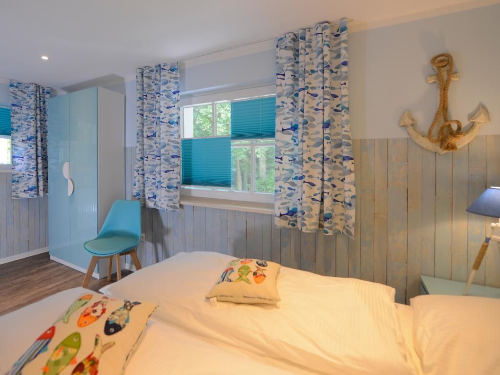 Hervorzuheben ist die, auch für Rollstuhlfahrende nutzbare, Wohnraumküche mit: Herd, Backofen, Dunstabzug, Mikrowelle, Kühlschrank mit integr. Gefrierfach, Geschirrspüler, Kaffeemaschine, Wasserkocher, usw. Während der wärmeren Jahreszeit nutzen Sie die Vorzüge der wohnungseigenen, saisonal möblierten Terrasse in Nord-Ost Ausrichtung, die ebenfalls rollstuhlgerecht mit einer befahrbaren Rampe ausgerüstet ist. Drei separate Schlafzimmer ermöglichen erholsame Nächte -1x mit Doppelbett 1,60m x 2,00m und Kleiderschrank, Fernseher. 1x mit Etagenbett je 0,90m x 2,00m und Fernseher, 1x mit einem hochfahrbaren Pflege-/Doppelbett 1,80m x 2,00m- mit Aufrichthilfe, Kleiderschrank, Fernseher.