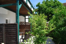 Im Badezimmerm befinden sich Dusche, Toilette und Badezimmerschrank. Auf der Terrasse gibt es einen großen Tisch, 4 Stühle und einen Grill.