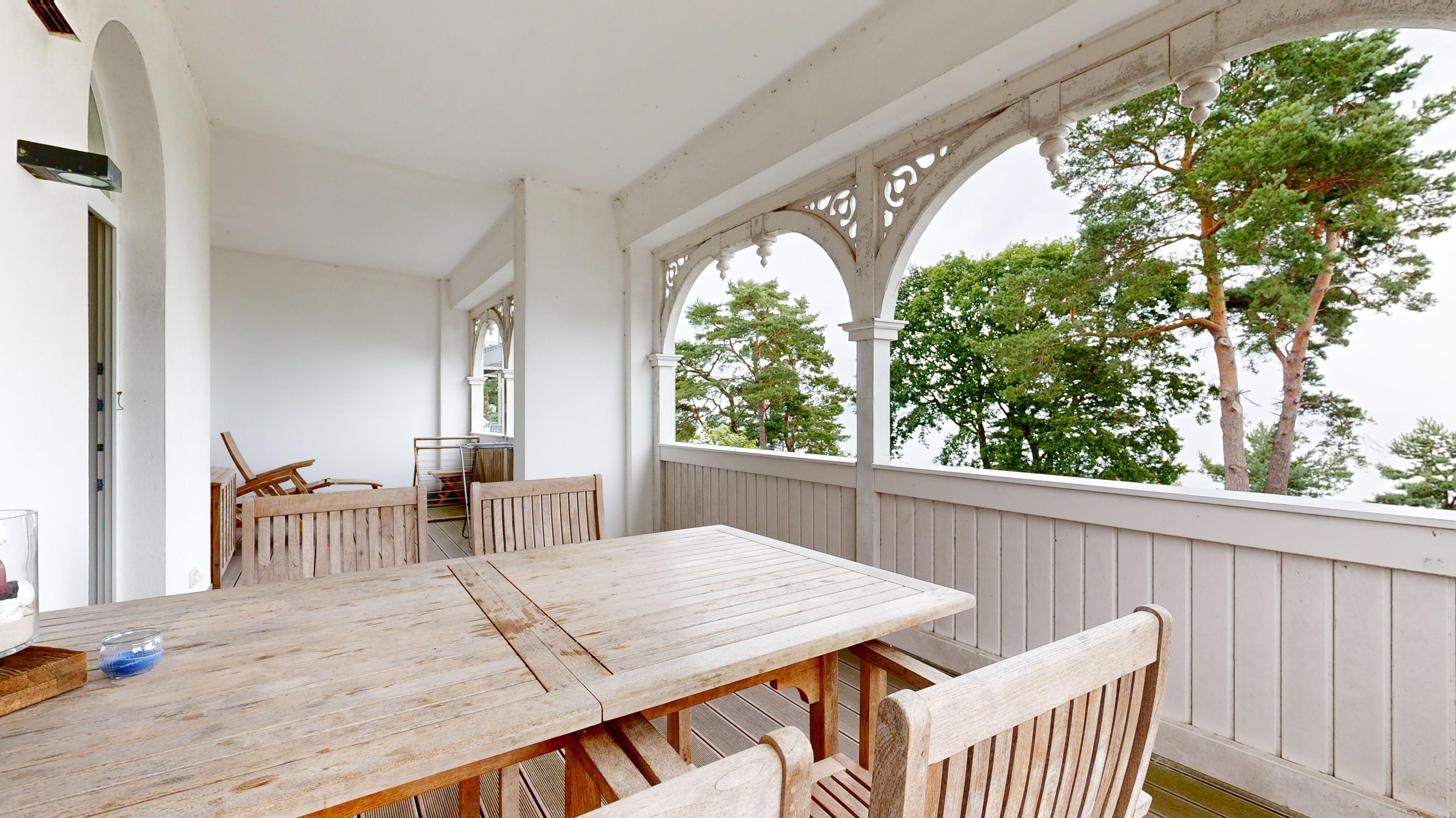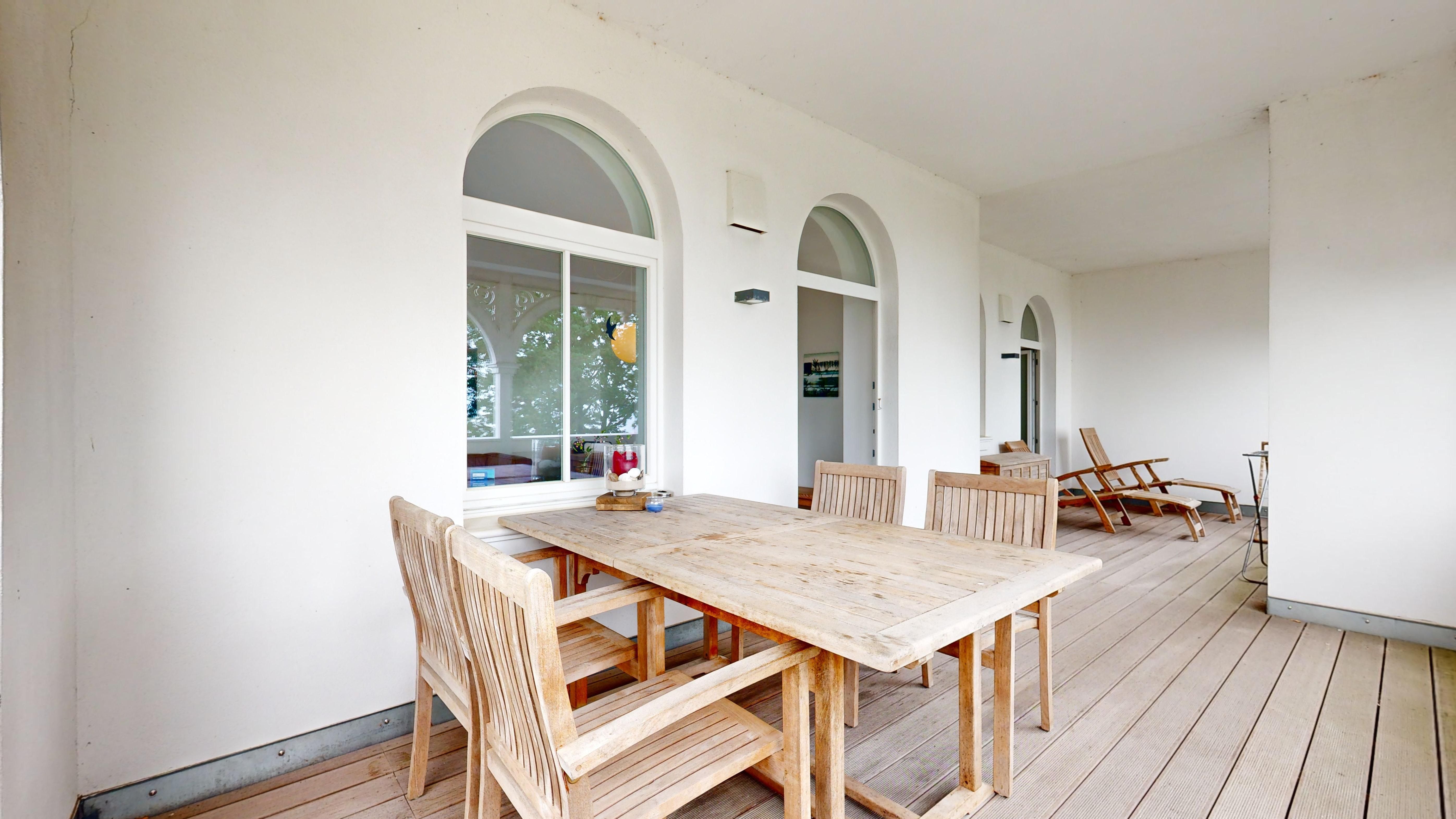 Großer Balkon mit Meerblick, Balkonmöbel (Liegen und großer Tisch)