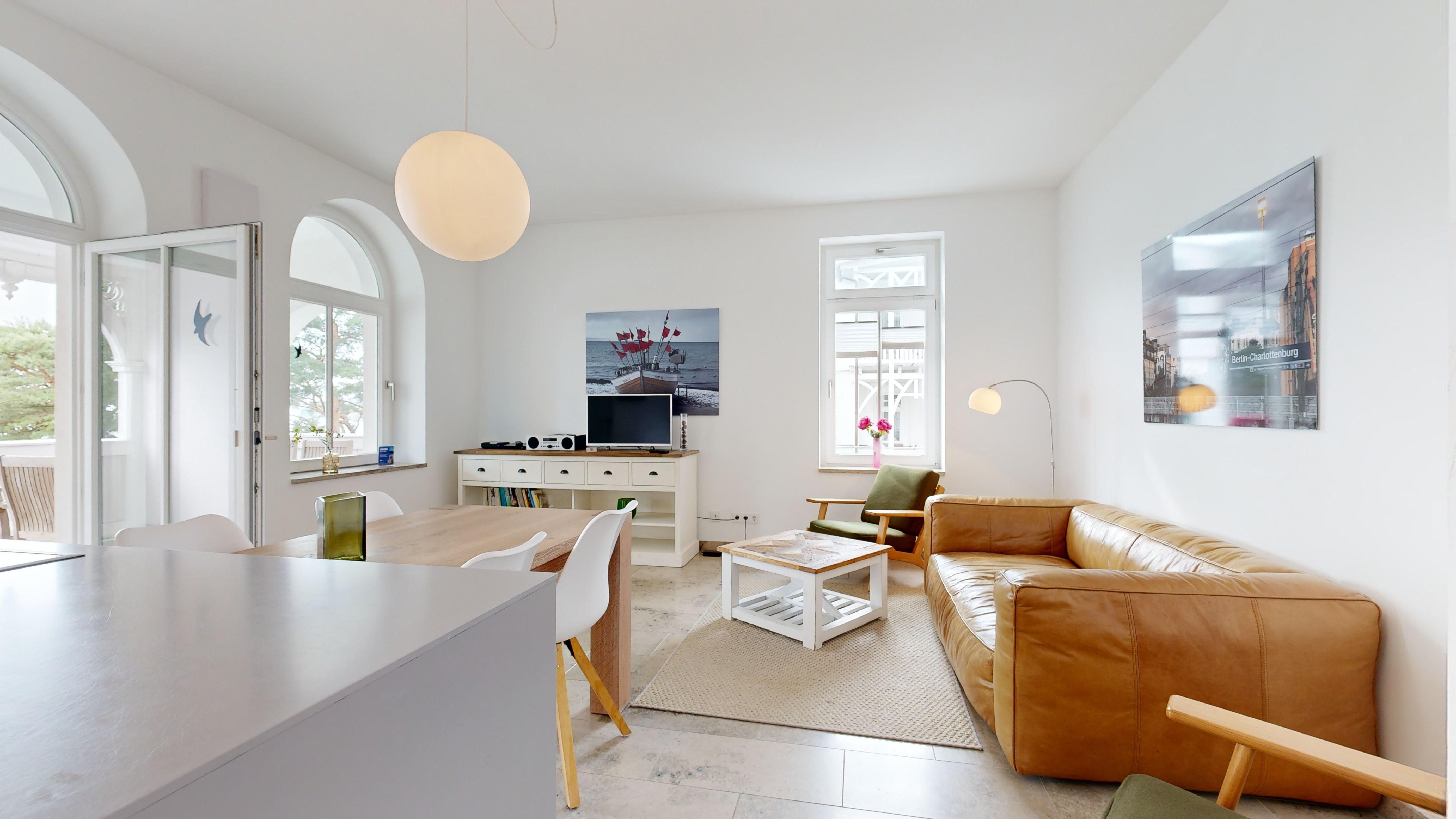 Die Villa Seeblick 05 ist eine schöne Ferienwohnung im 1. Obergeschoss mit einer modernen, freundlichen Einrichtung für bis 4 Personen (3 Zimmer / 77 m²), hat zwei Schlafzimmer, einen großen Balkon mit herrlichem Meerblick.