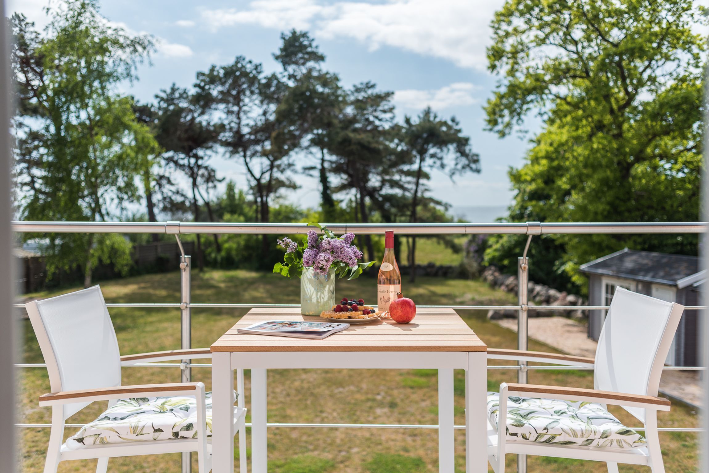 Die komfortable ca. 55 m² große Nichtraucherwohnung mit großem bestuhltem Balkon in der Villa Westwind ist für 2 bis max. 4 Personen geeignet. Über ein geräumiges Treppenhaus mit Eichentreppe gelangt man über den Flur, ausgestattet mit Garderobe und Kleiderschrank in einen hellen und offenen Wohn-/Essbereich mit durchgängiger Fensterfront. Von hier hat man nach Süd-Westen einen fantastischen Panorama- und Meerblick. Die Küchenzeile mit Cerankochfeld und Backofen, großem Kühlschrank mit Gefrierfach, Geschirrspüler, Mikrowelle, Kaffeemaschine, Senseo Maschine, Toaster, Wasserkocher und allen notwendigen Küchenutensilien passt sich mit einem massiven Esstisch und vier Stühlen in das wohnliche Ambiente mit Couch, Couchtisch, Sessel, Leselampe, Sideboard, Smart-TV, DAB-Radio und Blue Ray Player an. Auch im Urlaub brauchen Sie auf einen Internetanschluss (WLAN) nicht verzichten. Dieser ist für Sie inklusive. An kühlen Tagen kann ein Kaminofen (Kaminholz nicht inklusive) neben der Fußbodenheizung in der gesamten Wohnung für wohlige Wärme sorgen. Der durchgehende holzimitierte Steinfußboden spricht für Qualität. Das 1. Schlafzimmer ist mit einem Doppelbett (1,80 m x 2 ,00 m/ HG 3 und zusätzlichen Topper), Nachttischablagen und Schränken ausgestattet. Im 2. Schlafzimmer befinden sich zwei massive Einzelbetten (á 0,90 m x 2,00 m) sowie eine kleine Kommode. Das sehr großzügige und moderne Bad ist mit einer ebenerdigen Dusche, Waschbecken, WC, Kosmetikspiegel, beheizbarem Handtuchtrockner, Fön und einer leistungsfähigen Entlüftungsanlage ausgestattet. Alle Räume sind mit Insektenschutzgitter versehen. Ein Staubsauger, ein mobiler Wäschetrockner und Reinigungsutensilien sind ebenso vorhanden. Der PKW-Stellplatz Nr. 03 befindet sich direkt vor dem Haus. In einem Gartenschuppen, welcher für Whg 3 und 4 zu nutzen ist, ist unter anderem Platz für Ihre geliehenen oder mitgebrachten Fahrräder sowie die Möglichkeit Ihre E-Bikes zu laden. Die große Wiese hinter dem Haus können auch zum Entspannen oder Grillen nutzen. Haustiere sind nicht erlaubt. Die Erstausstattung eines Wäschepaketes (komplette Bettwäsche, 1 Duschhandtuch, 2 kleine Handtücher) können Sie bis 14 Tage vor Anreise dazu buchen oder durch eigene ergänzen. Ab 2 gebuchten Paketen erhalten Sie einmalig 1 Geschirrhandtuch und 1 Duschvorleger hinzu.