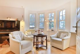 Wellenrauschen inklusive. In dieser Traumvilla wohnen Sie nur 30m zum Strand. Die vollständig sanierte Villa im Landhausstil der 20iger Jahre, beheimatet sieben exklusive Suiten je Haus. Die edlen Appartements bieten überwiegend Seeblick, sind teilweise mit Kaminofen ausgestattet und bieten Raum für 2 bis 4 Gäste. Bezogene Betten und Handtücher bei Anreise inklusive. Sämtliche Wohnungen verwöhnen mit Balkon, bzw. zwei Balkonen oder ggf. Balkonterrasse mit Gartenzugang. Einige Suiten sind Maisonetten Wohnungen. Das anmutige Landhaus ist umgeben von einem 2000qm Waldpark mit Kiefern und Rhododendron. Kostenfreies WLAN und PKW-Außenstellplätze auf dem hauseigenen Grundstück. Keine Haustiere. Nichtraucher.