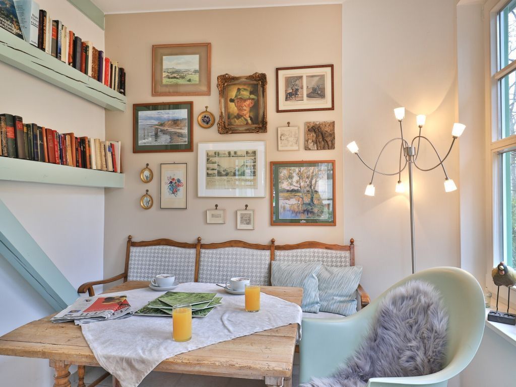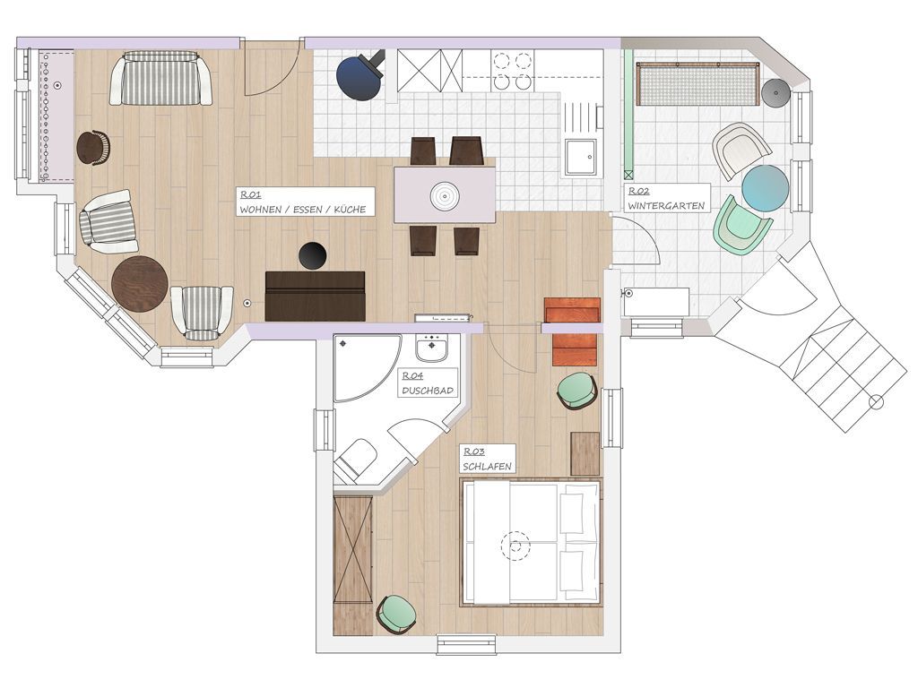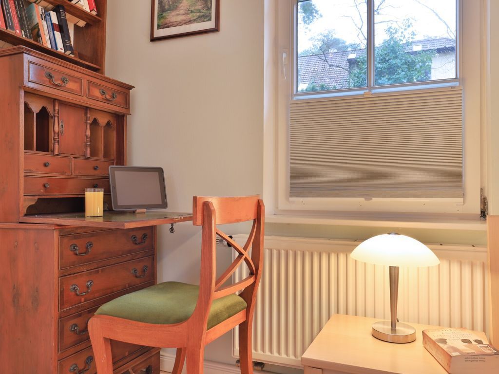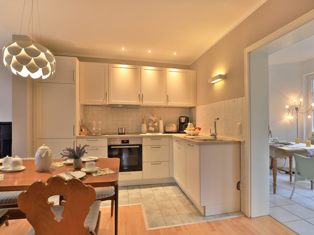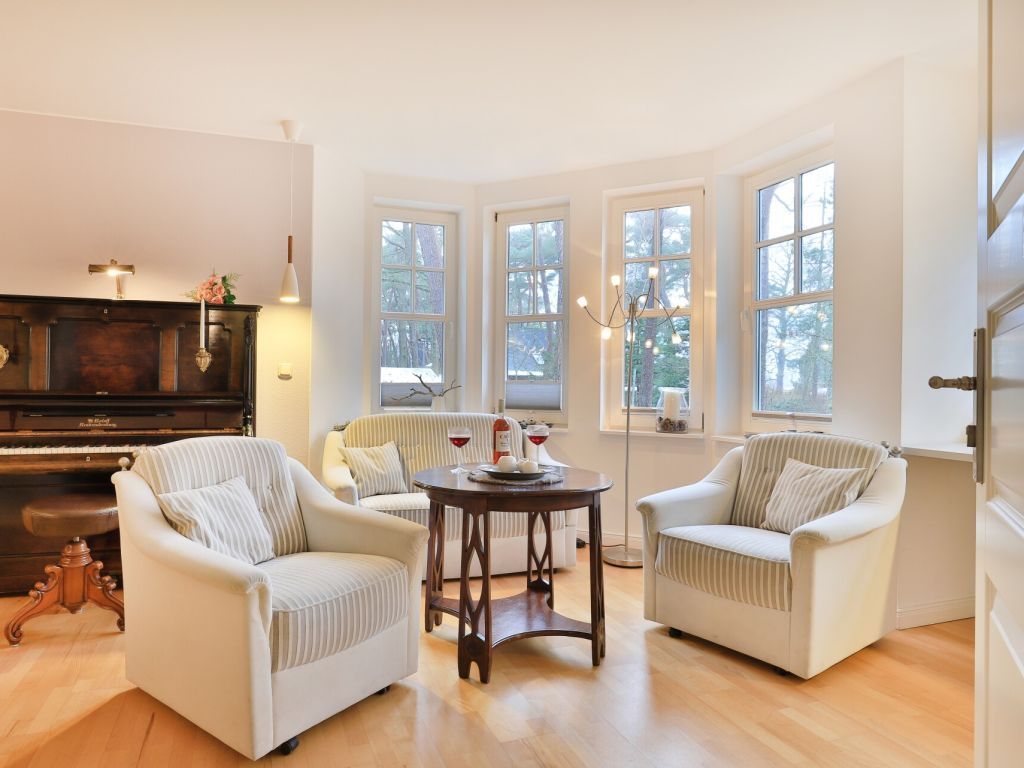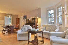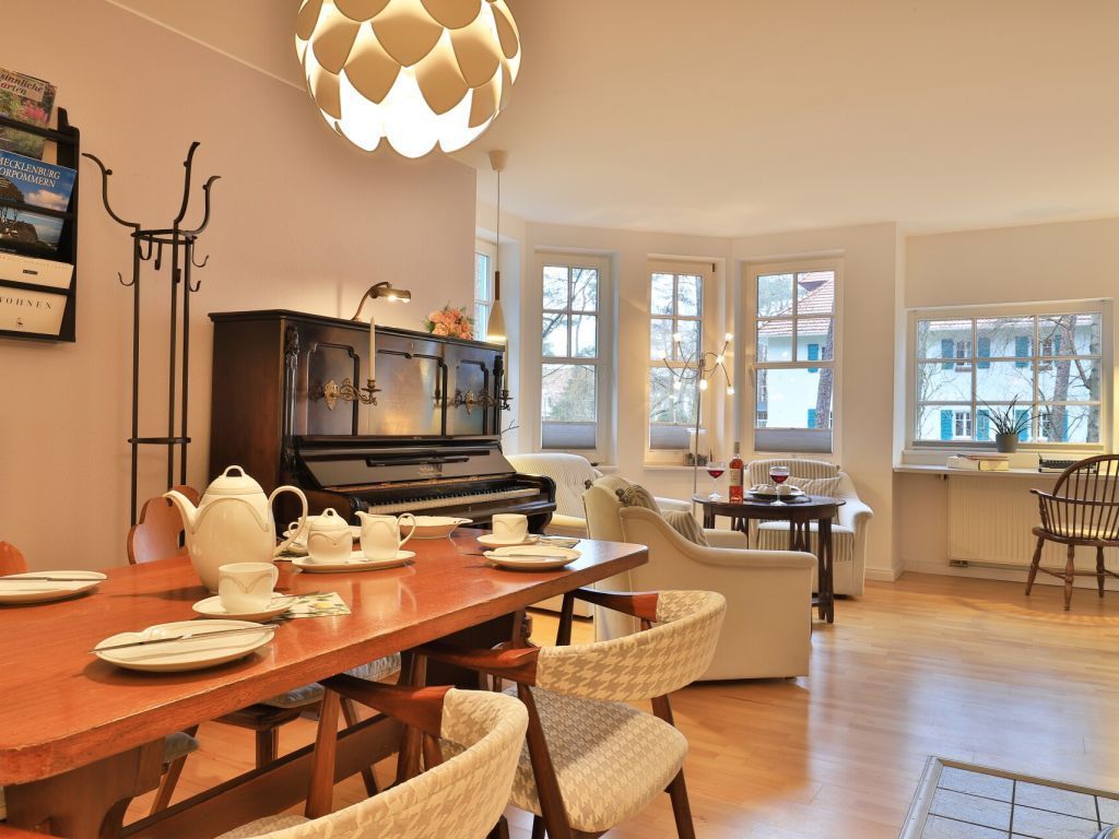Die 2,5 Zimmer Suite Möwe- mit Terrasse, bietet eine großzügige Wohnfläche von 60qm und ist ideal für zwei Gäste. Sehr komfortabel empfängt Sie der gehoben möblierte Wohn-Essbereich mit einer bequemen Sofagarnitur, Kaminofen, Schreibplatz, Klavier, Fernseher. WLAN nutzen Sie kostenfrei. Die offene Einbauküche, mit Esstischtisch, ermöglicht vorteilhaft die Selbstversorgung mit: Ceranfeldherd, Backofen, Dunstabzug, Kaffeemaschine, Wasserkocher, Toaster u.v.m. Hervorzuheben ist der charmant möblierte Wintergarten mit Blick in den Waldpark und Zugang zur Terrasse, die Sie über fünf Stufen erreichen. Erholsam schlafen Sie im separaten Schlafzimmer mit Doppelbett, Kleiderschrank und einem Sekretär. Bei Anreise sind Ihre Betten bereits für Sie bezogen und Handtücher liegen bereit. Das vom Schlafzimmer zu betretene Tageslichtduschbad ist mit einer Dusche, Waschtisch, Föhn und WC ausgestattet.