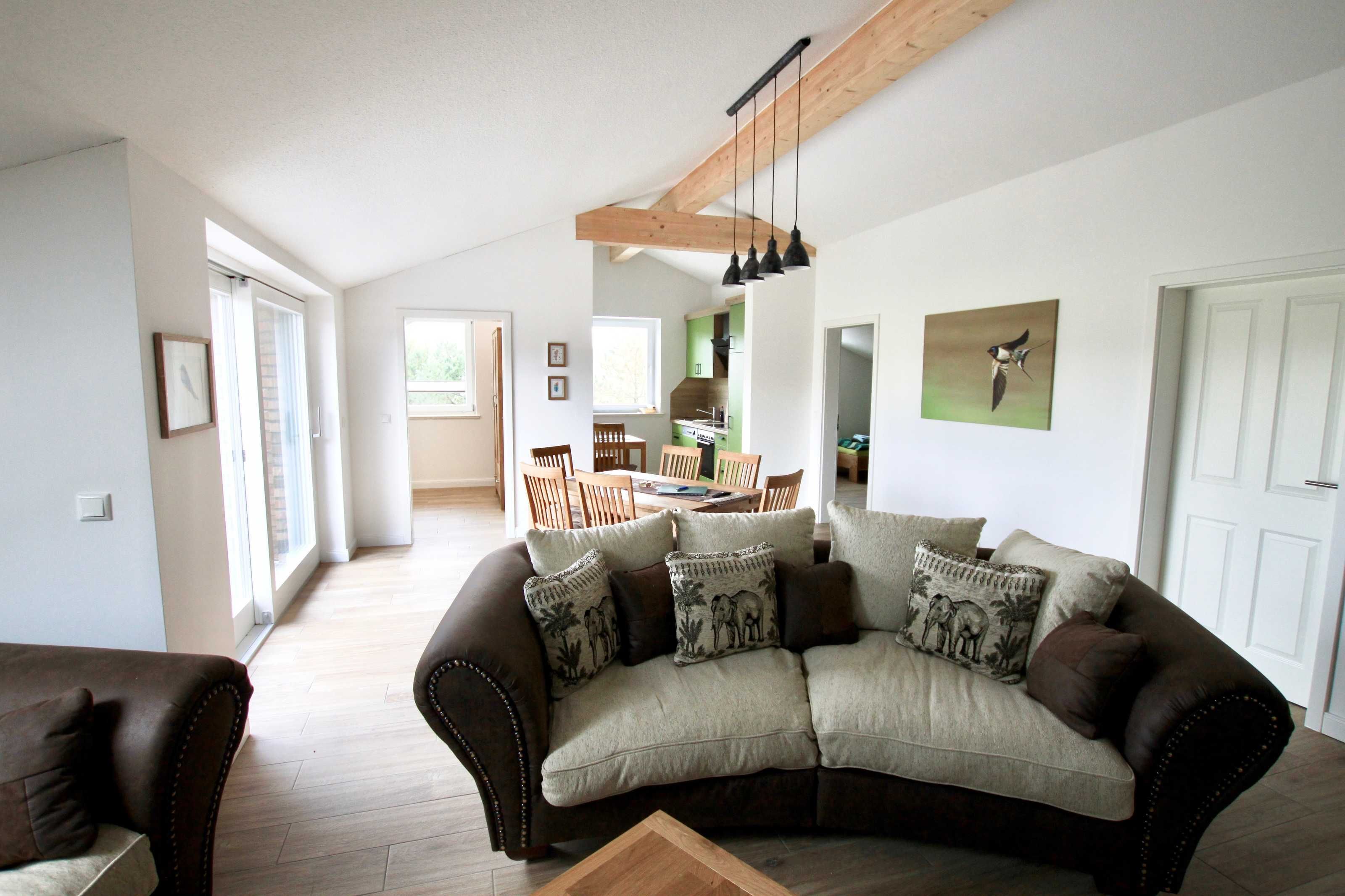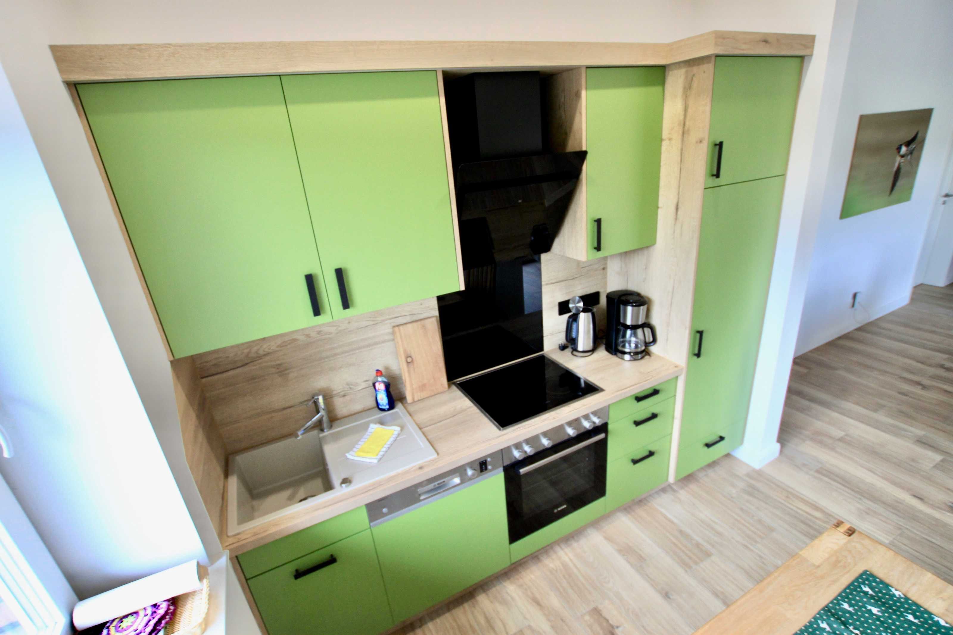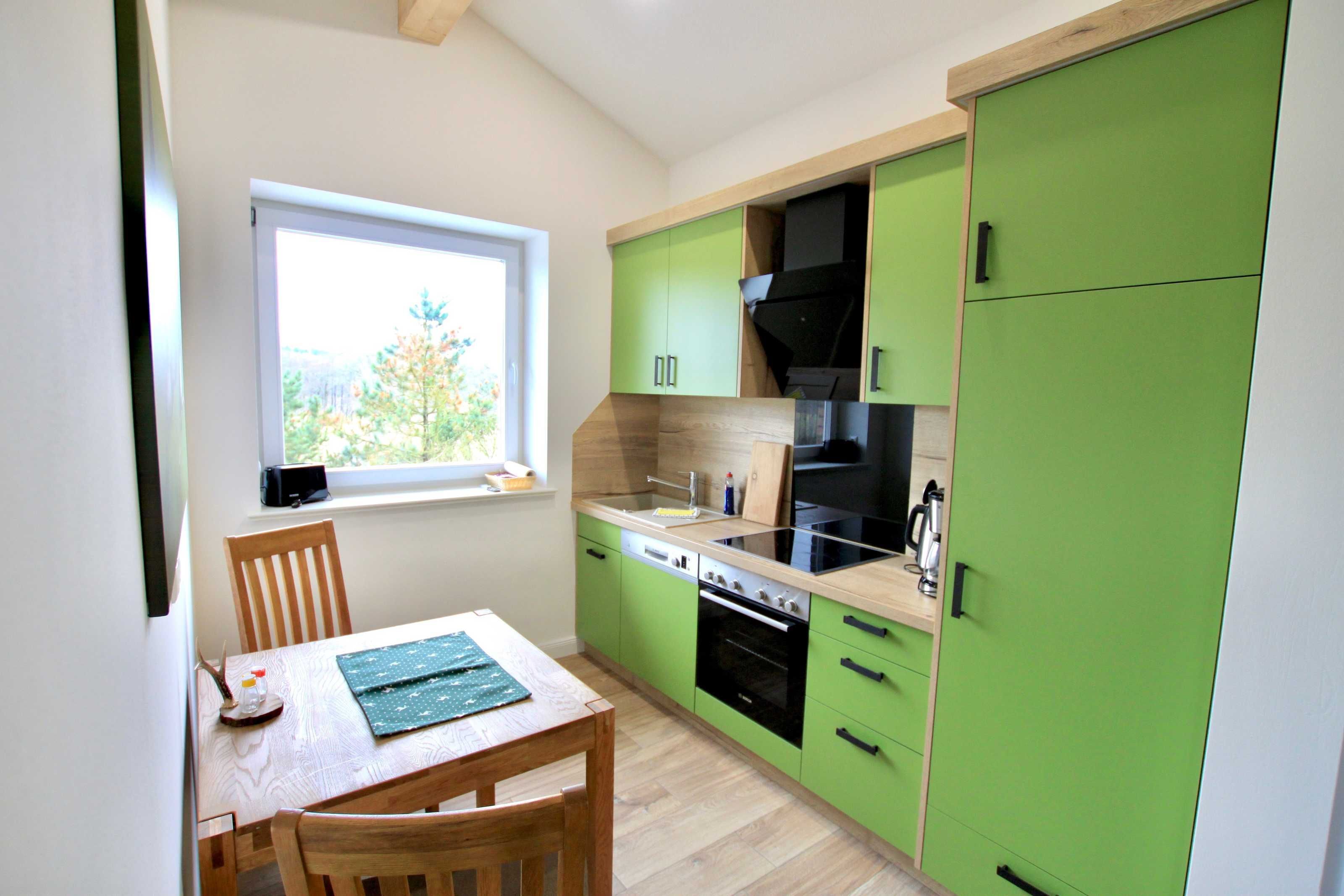 Die Ferienwohnung verfügt über eine Küche mit offenem Wohn- und Essbereich. Schauen Sie beim Abendbrot Fern oder genießen Sie die wundervolle Aussicht.