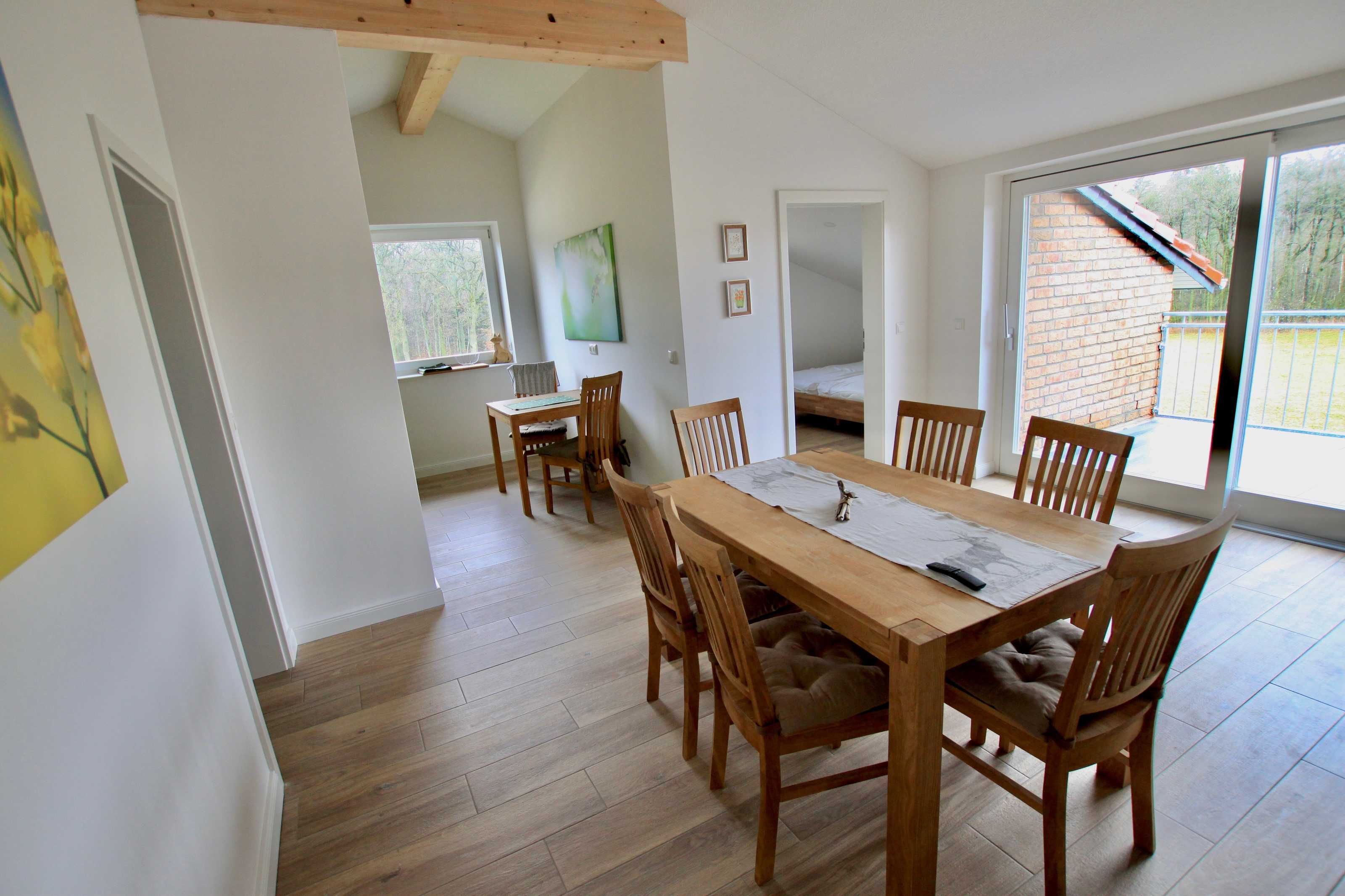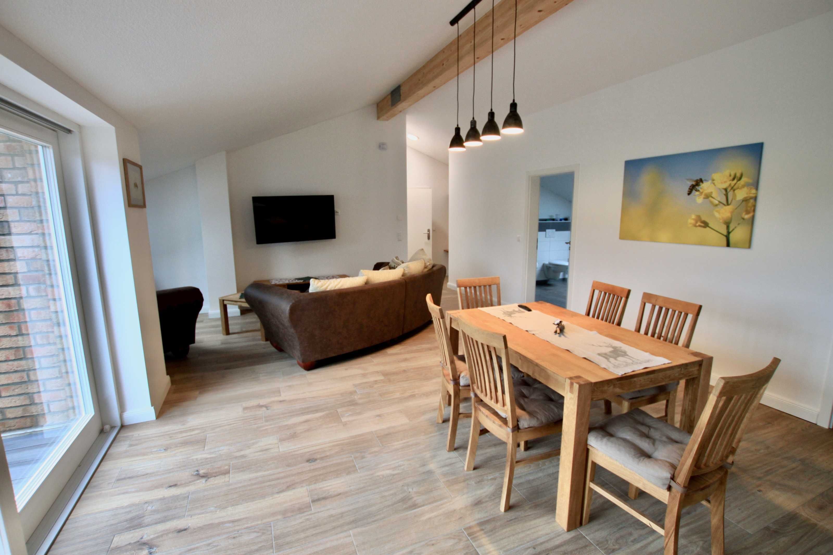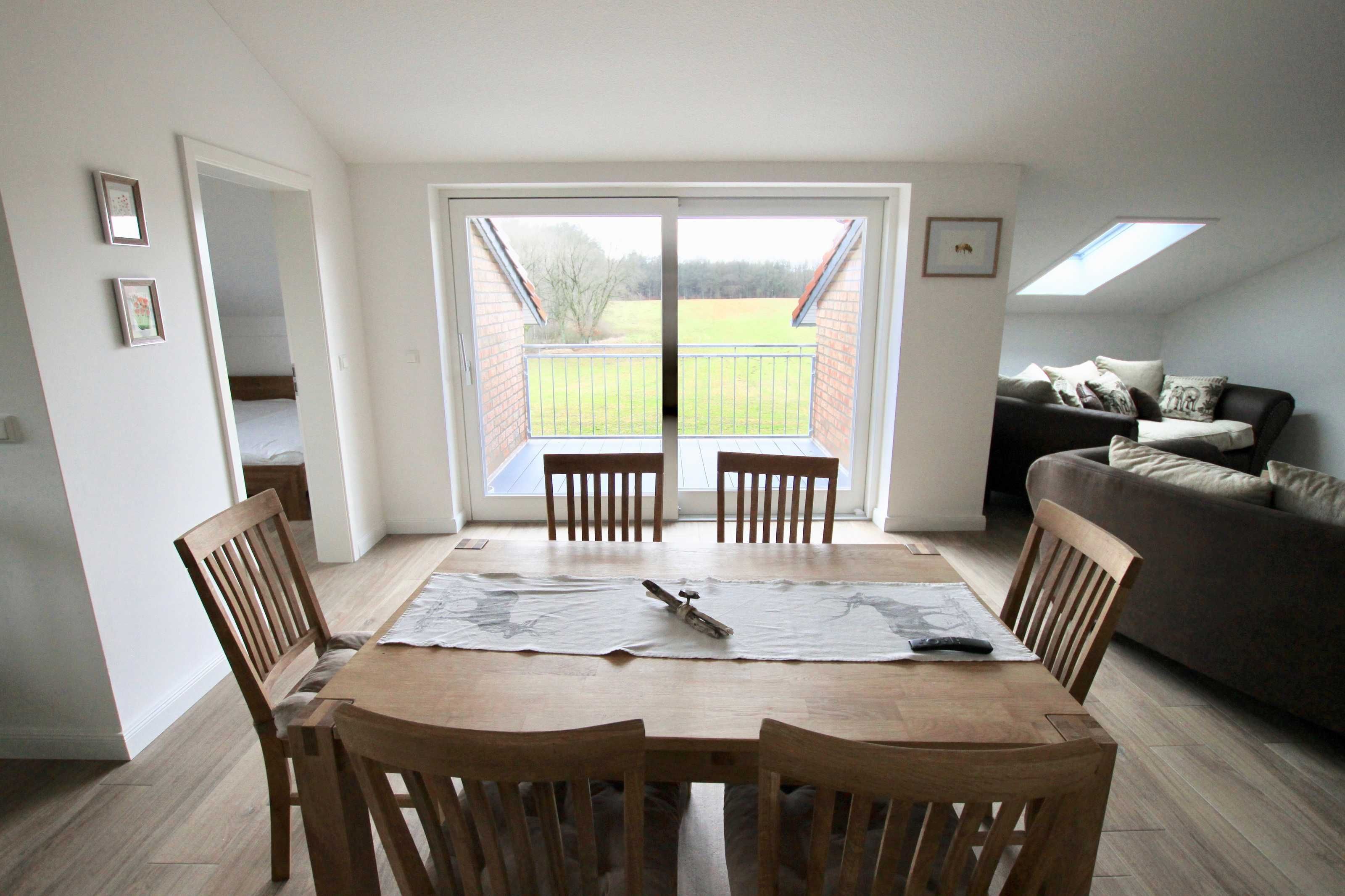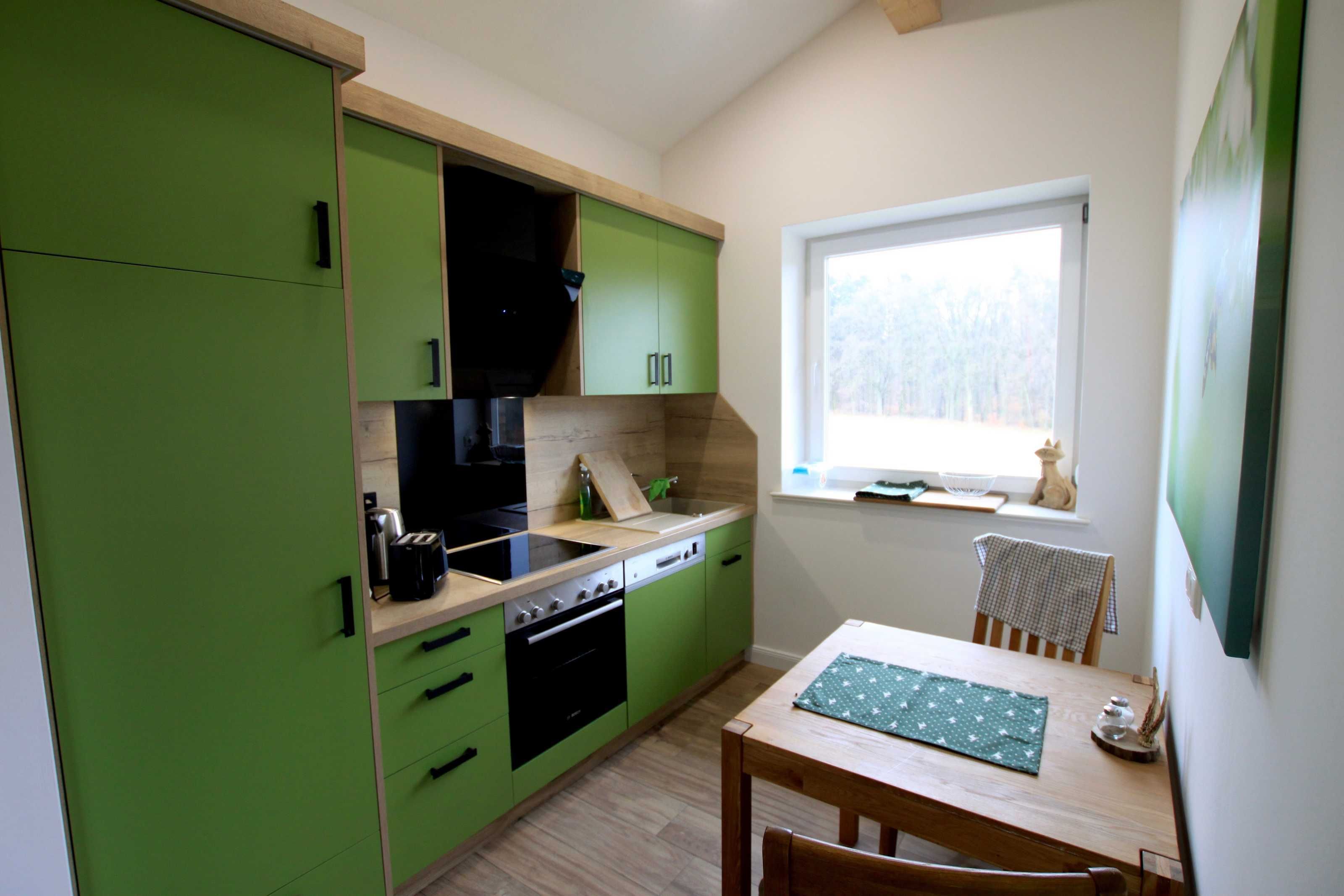 Die Ferienwohnung verfügt über eine Küche mit offenem Wohn- und Essbereich. Schauen Sie beim Abendbrot Fern oder genießen Sie die wundervolle Aussicht.