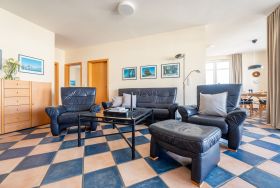 Die Ferienwohnung verfügt über zwei separate Schlafzimmer, eine hochwertige Küche, ein komfortables Duschbad, eine Loggia, sowie über einen Garagenstellplatz. Die ideale Ferienwohnung für zwei bis vier Personen.