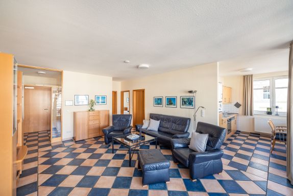 • Wohnzimmer : Ledersofa, Sessel, Tisch, Fernseher (Kabel), Internetanschluss (lan und wlan)