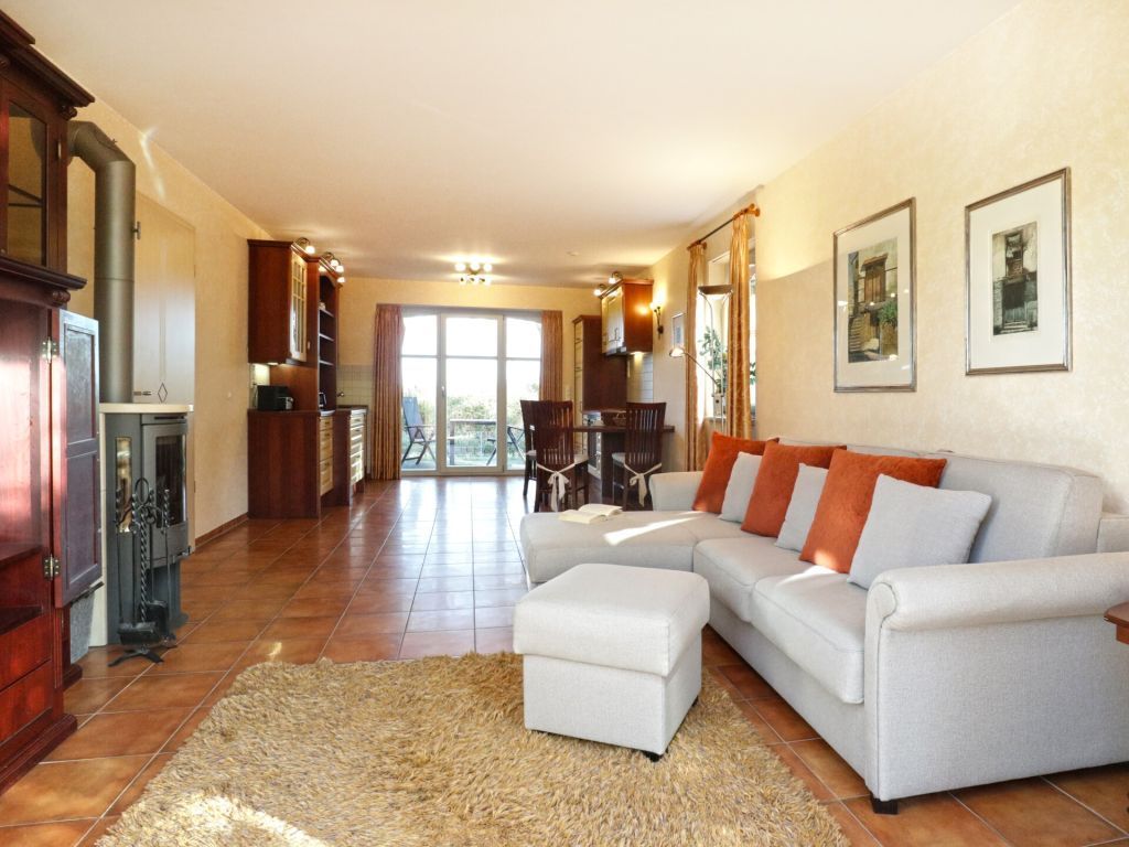 Nur 30m zur Ostsee verwöhnt das hochwertig eingerichtete 2-Zimmer Appartement mit Wintergarten und einer großzügigen Wohnfläche von 61qm, sowie Balkon und Terrasse mit Gartennutzung. Eine Belegung dieser Ferienwohnung ist mit max. 3 Personen möglich. Im hellen Wohn-Essbereich mit Kaminofen und teilweise bodentiefen Fenstern, befindet sich ein bequemes Sofa, das auch als Schlafmöglichkeit für eine dritte Personen genutzt werden kann. Hervorzuheben ist der verglaste Wintergarten. Ebenso sind Fernseher, Musikanlage und Gebührenfreies WLAM vorhanden. Ideal für Selbstversorger bietet die offene Wohnküche sämtliche Vorzüge zur Mahlzeitenzubereitung mit: Ceranherd, Backofen, Kühlschrank mit Frostfach, Spülmaschine, Wasserkocher, Kaffeemaschine, Toaster u.v.m. Gemeinsame Mahlzeiten können Sie am Esstisch zu sich nehmen. Auf dem saisonal möblierten Süd-West Balkon entspannen Sie ebenso, wie auf der nach Nord-Ost ausgerichteten Terrasse. Das separate Schlafzimmer ist mit einem Boxspringbett 1,80m mal 2,00m, einem Kleiderschrank und einem Schreibplatz eingerichtet. Die Wohnung besitzt ein geräumiges Tageslicht Duschbad mit Waschtisch, WC. Auch eine Waschmaschine und Wäschetrockner können im Kellergeschoss des Hauses gegen Gebühr (1?-Münzen) genutzt werden. Ihr Fahrzeug parken Sie auf einem kostenfreien PKW-Außenstellplatz, wo auch eine Auto E-Ladestation zur Verfügung steht. Mitgebrachte Fahrräder können in einem Fahrradschuppen untergebracht werden.