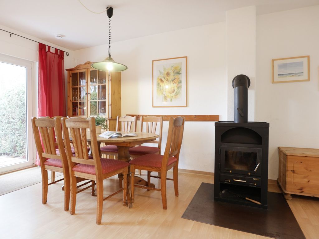 In einem kleinen Waldgebiet nur 350 Meter zum Strand, bietet das behaglich möblierte Ferienhaus einen perfekten Familienurlaub. Erholung finden Sie auf der nach Süden gerichteten Terrasse, welche mit einer Markise beschattet werden kann. Die Wohnfläche des familienfreundlichen Hauses beträgt 55qm und ist ideal für bis zu 4 Personen. Schon beim Betreten des Wohn-/Essbereiches werden Sie sich direkt wohl fühlen. Ein bequemes Sofa, zwei Ruhesessel, Kaminofen, Fernseher, Musikanlage, wie auch ein Esstisch für Ihre gemeinsamen Mahlzeiten ermöglichen einen angenehmen Aufenthalt. In den Wohnbereich ist eine offene Küche integriert. Diese ist gut ausgestattet mit Herd, Backofen, Mikrowelle, Geschirrspüler sowie weiteren Kleingeräten. Des Weiteren befindet sich auf der Wohnebene ein Schlafzimmer mit zwei Einzelbetten und Kleiderschrank. Ebenso ist ein Duschbad vorhanden in dem Sie auch eine Waschmaschine nutzen können. Über eine Treppe gelangen Sie in die obere Etage, wo sich das zweite Schlafzimmer mit Doppelbett und Kleiderschrank und auch ein Gäste-WC befinden. Für kleine Kinder stehen im Ferienobjekt ein Kinderreisebett sowie ein Hochstuhl bereit.