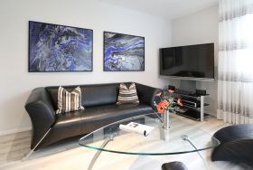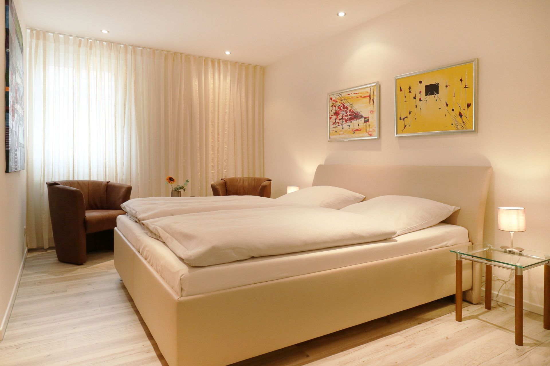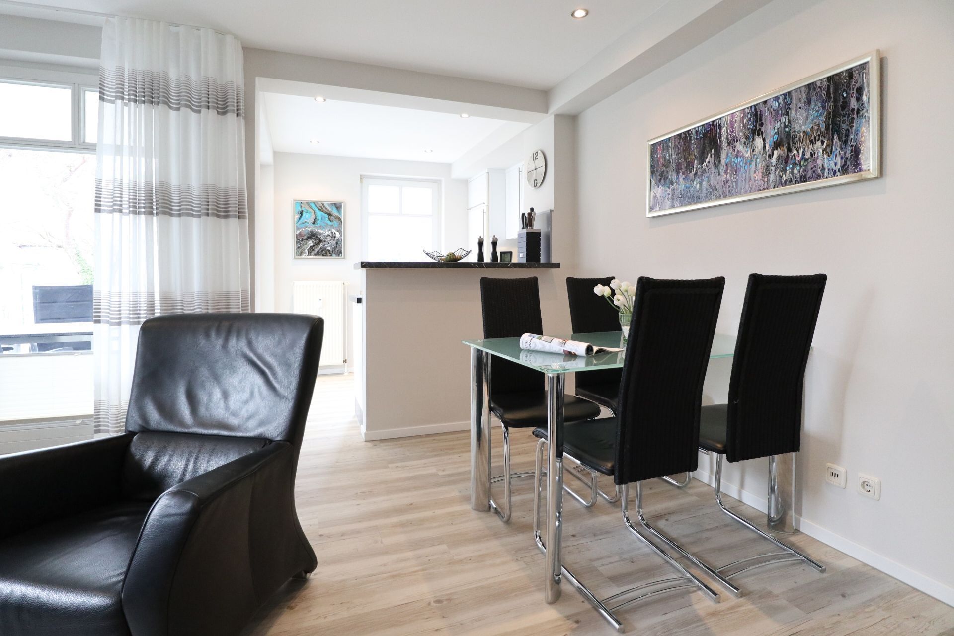 Die behagliche, komfortabel eingerichtete 2-Zimmer-Ferienwohnung befindet sich im 1. Obergeschoss und bietet auf 67qm Wohnfläche Platz für bis zu 4 Personen. Der gemütliche Wohn-/Essbereich ist mit zwei komfortablen Sofas, einem Relax-Sessel und einem großen Esstisch ausgestattet. Unterhaltung bieten ein Fernseher, DVD-Player, Videorecorder und eine Musikanlage. Den Internetzugang über WLAN nutzen Sie ohne Gebühr. Die separate Küche ist ideal für die Selbstversorgung und verfügt über Herd, Backofen, Kühlschrank mit Gefrierfach, Geschirrspüler sowie Toaster, Wasserkocher und Kaffeemaschine. Genießen Sie Ihre Mahlzeiten im Essbereich oder auf dem sonnigen, saisonal möblierten Balkon. Das geräumige Schlafzimmer bietet ein Doppelbett und einen Kleiderschrank, während das modernisierte Duschbad mit Waschtisch und WC ausgestattet ist. Eine Waschmaschine steht kostenfrei zur Verfügung, und Ihr PKW kann in der hauseigenen Tiefgarage geparkt werden, von wo aus Sie mit dem Fahrstuhl direkt zur Wohnungsetage gelangen.