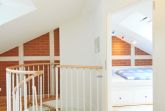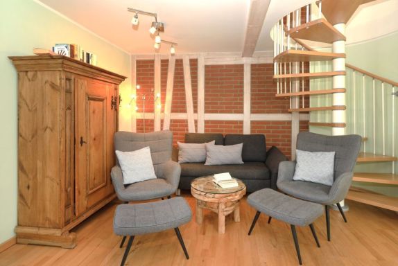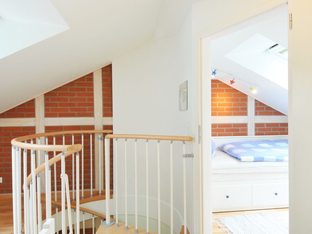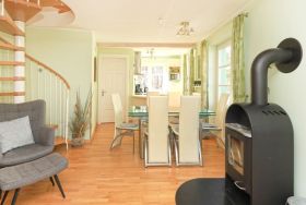 Die 3- Zimmer Meerblick Maisonetten Suite Seepferdchen, mit zwei Balkonen, ist eine Traumferienwohnung mit einer Wohnfläche von 55qm. Eine Belegung ist mit max. 4 Personen möglich. Sehr komfortabel empfängt Sie der geschmackvoll möblierte Wohn-Essbereich mit einem bequemen Sofa -ausziehbar- , zwei Lesesesseln mit Beinablage, Kaminofen und Esstisch. Ein Fernseher, Musikanlage und gebührenfreies WLAN sorgen für Unterhaltung. Die in den Wohnbereich integrierte Einbauküche ermöglicht die Selbstversorgung mit: Ceranfeldherd, Mikrowelle, Dunstabzug, Kühlschrank mit integr. Gefrierfach, Kaffeemaschine, Wasserkocher, Toaster u.v.m. Ihre zubereiteten Mahlzeiten können Sie am Esstisch zu sich nehmen, oder während der wärmeren Monate genießen Sie Ihren Kaffee auf einem der saisonal möblierten Balkone in Nord bzw. Nord-West Ausrichtung. Über eine Wendeltreppe gelangen Sie in den Galerie Schlafbereich mit Doppelbett 1,60m x 2,00m- als Durchgangszimmer zum zweiten Schlafzimmer, das mit einem Einzelbett ausgestattet ist. Bei Anreise sind Ihre Betten bereits für Sie bezogen und Handtücher liegen bereit. Die Ferienwohnung besitzt ein Duschbad mit Waschtisch, Föhn und WC. Allen Hausgästen steht der 2000qm große Garten mit schattigen Ruhezonen und Gartenliegen zum Entspannen zur Verfügung.