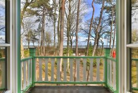 Wellenrauschen inklusive. In dieser Traumvilla wohnen Sie nur 30m zum Strand. Die vollständig sanierte Villa im Landhausstil der 20iger Jahre, beheimatet sieben exklusive Suiten je Haus. Die edlen Appartements bieten überwiegend Seeblick, sind teilweise mit Kaminofen ausgestattet und bieten Raum für 2 bis 4 Gäste. Bezogene Betten und Handtücher bei Anreise inklusive. Sämtliche Wohnungen verwöhnen mit Balkon, bzw. zwei Balkonen oder ggf. Balkonterrasse mit Gartenzugang. Einige Suiten sind Maisonetten Wohnungen. Das anmutige Landhaus ist umgeben von einem 2000qm Waldpark mit Kiefern und Rhododendron. Kostenfreies WLAN und PKW-Außenstellplätze auf dem hauseigenen Grundstück. Keine Haustiere. Nichtraucher.